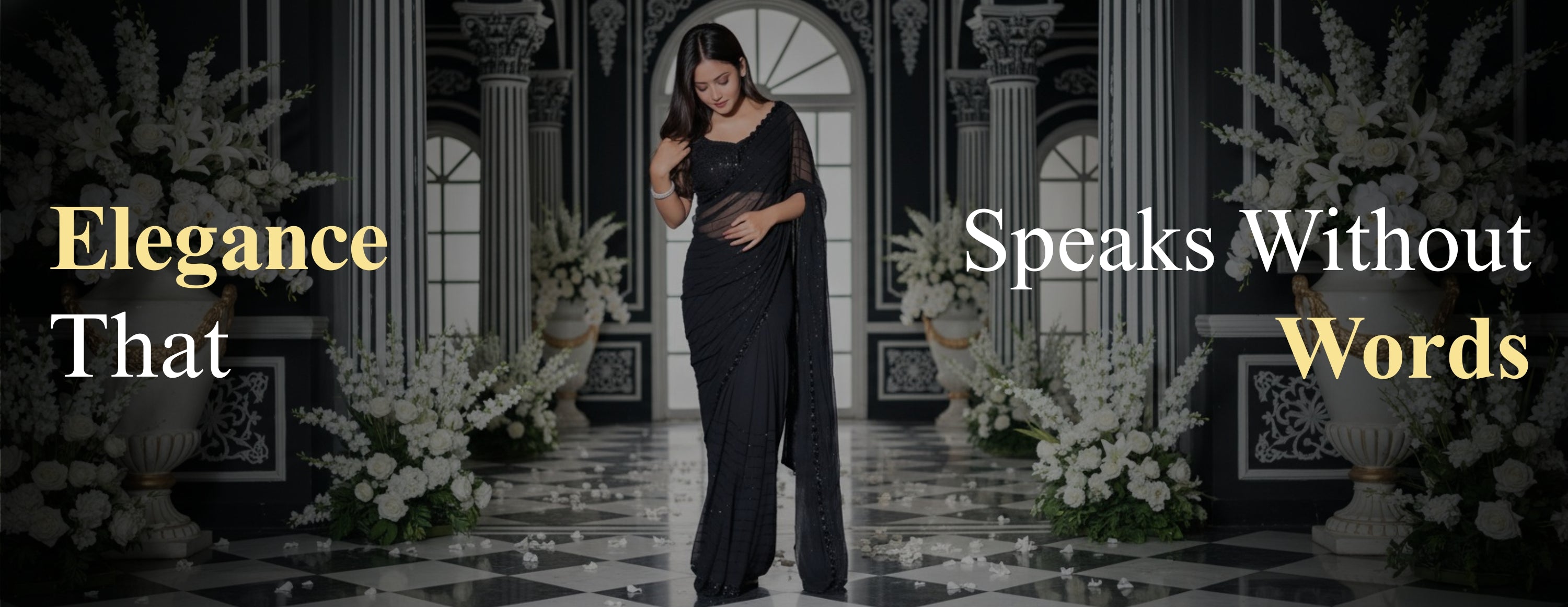 Grace meets glamour with this classic black saree adorned in delicate wavy cutdana embroidery and a finely crafted designer border. Perfect for evening parties, weddings,...