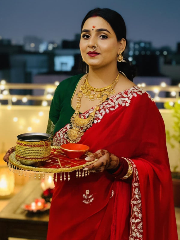 Soft, graceful, and timeless 💫This Waree chiffon saree features delicate stone floral embroidery with a shimmering cutwork border that adds effortless festive charm. Crafted in...
