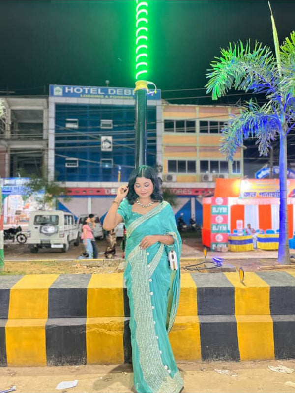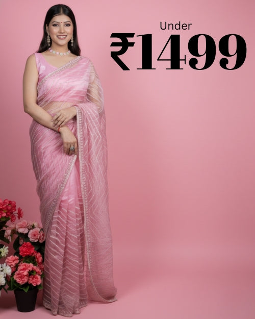 Premium Net Saree with Sequin and pearl Stripes & Pearl Border Work