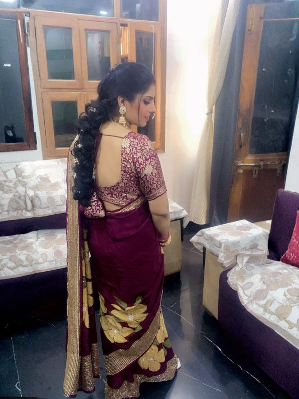 Pure Chiffon Saree with Appliqué Floral Embroidery