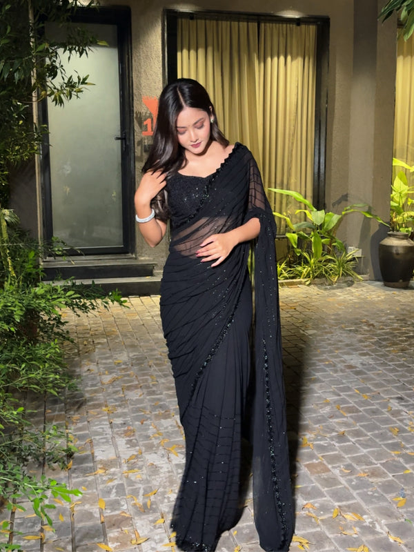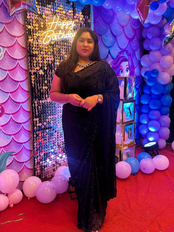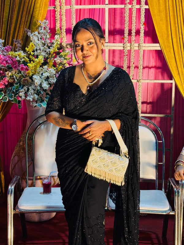 Elegant Black Cutdana Embroidered Saree with Designer Border