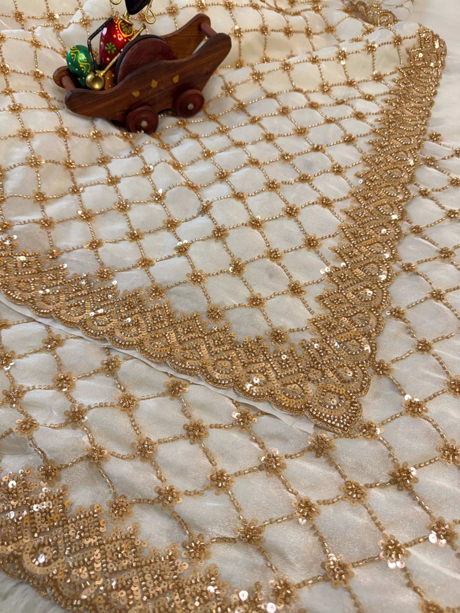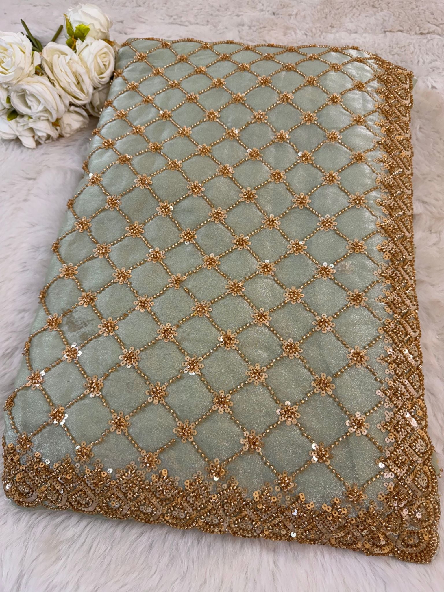• Work: Handworked beads & sequins in diamond jaal pattern