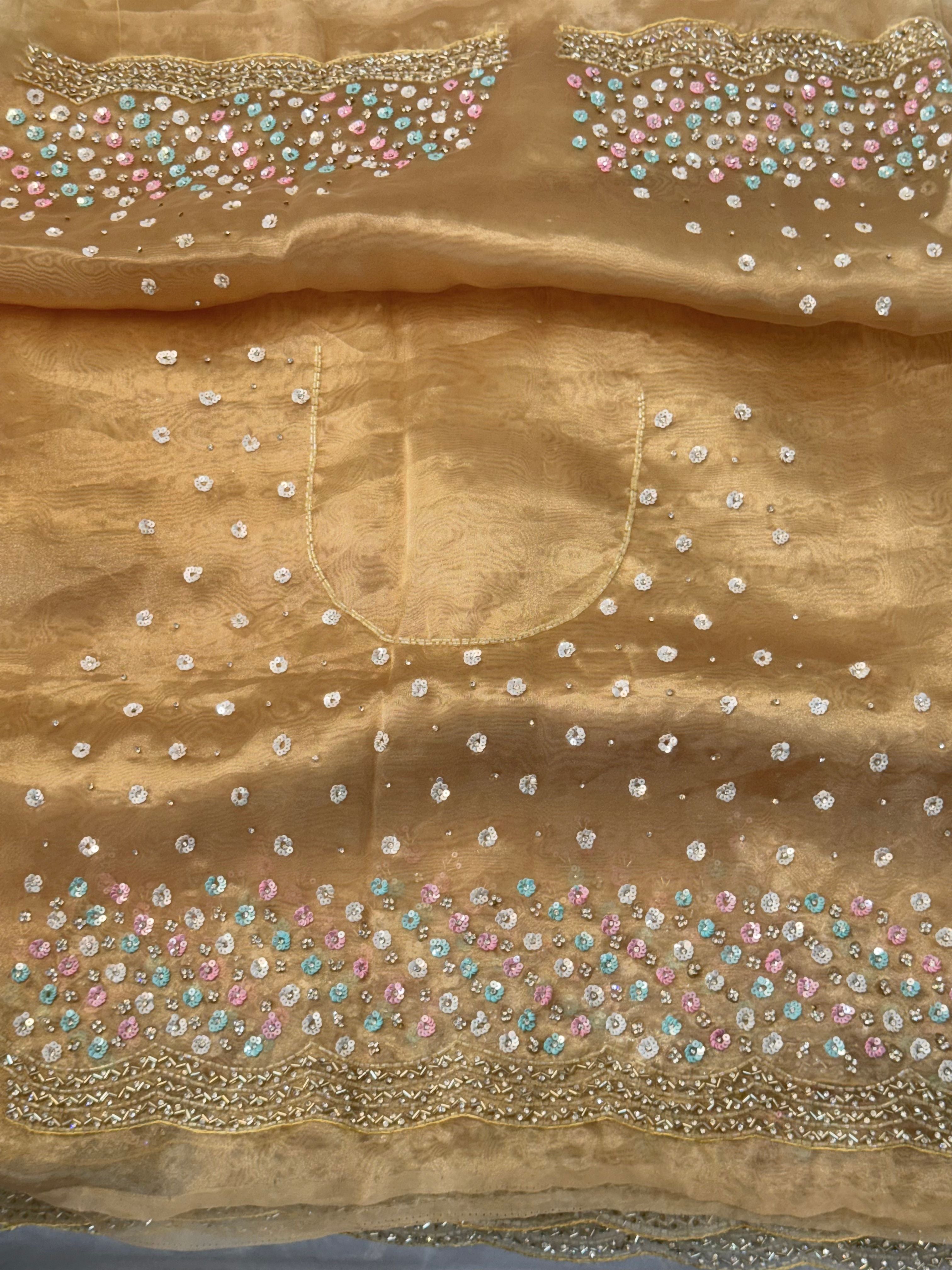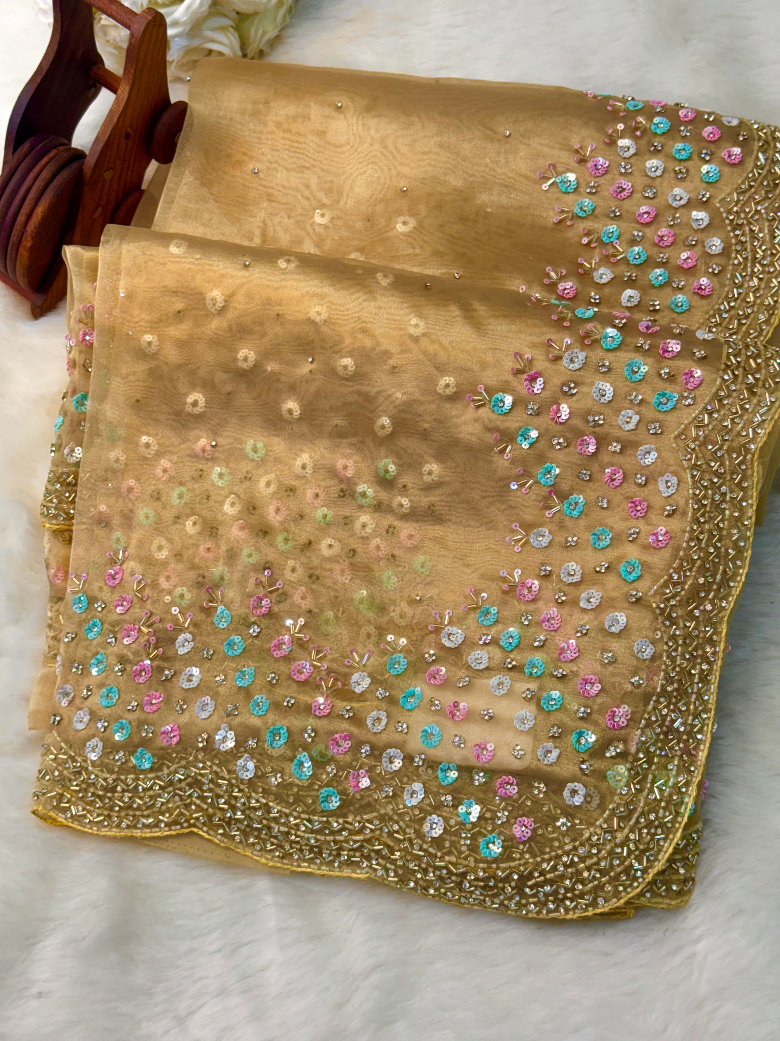 βœ”οΈ Touches of golden zari and bead embroidery