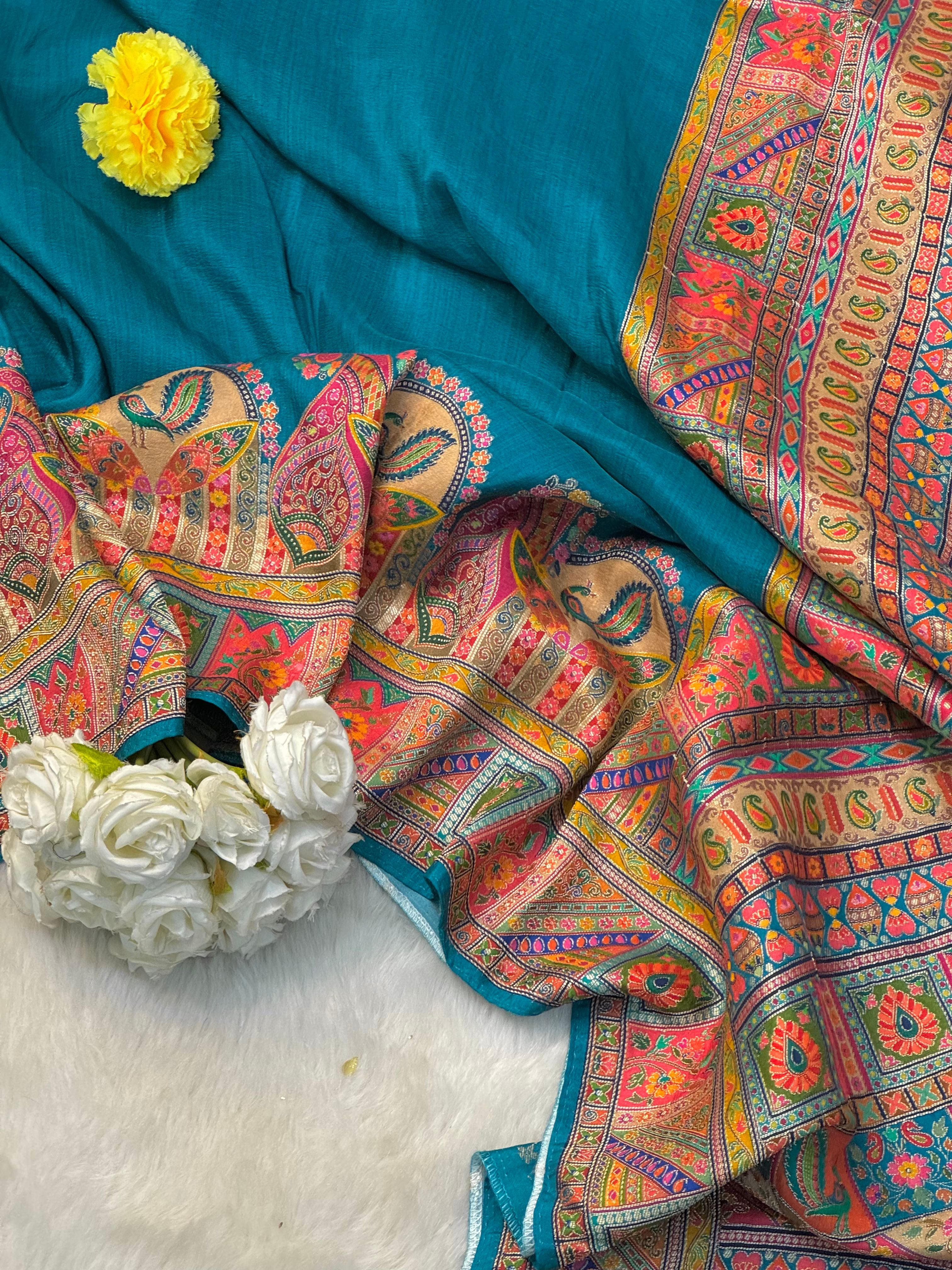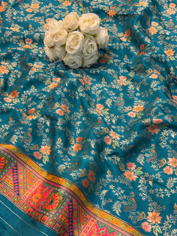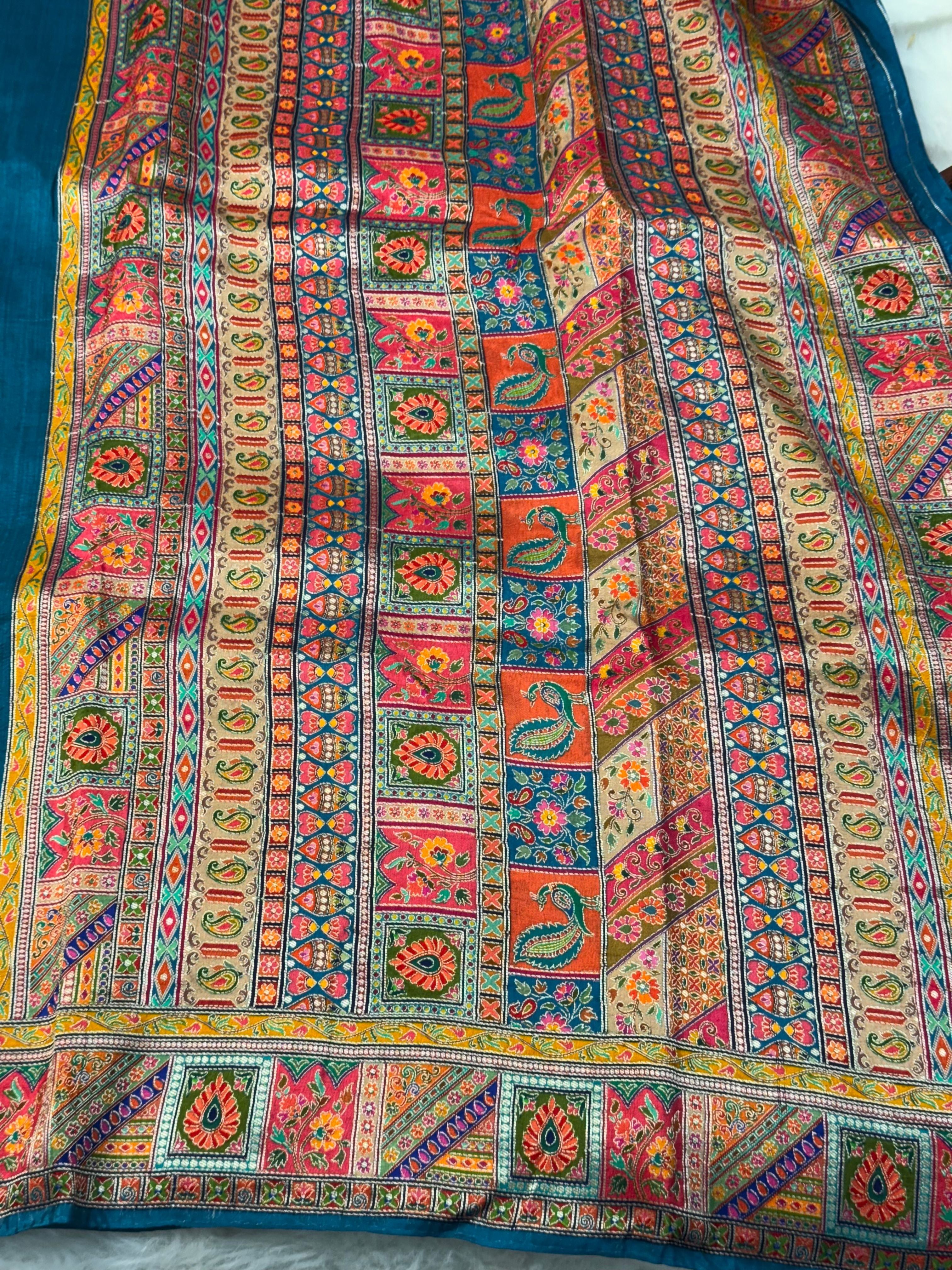 Peacock & Floral Print Silk Saree – Patola Style Weave