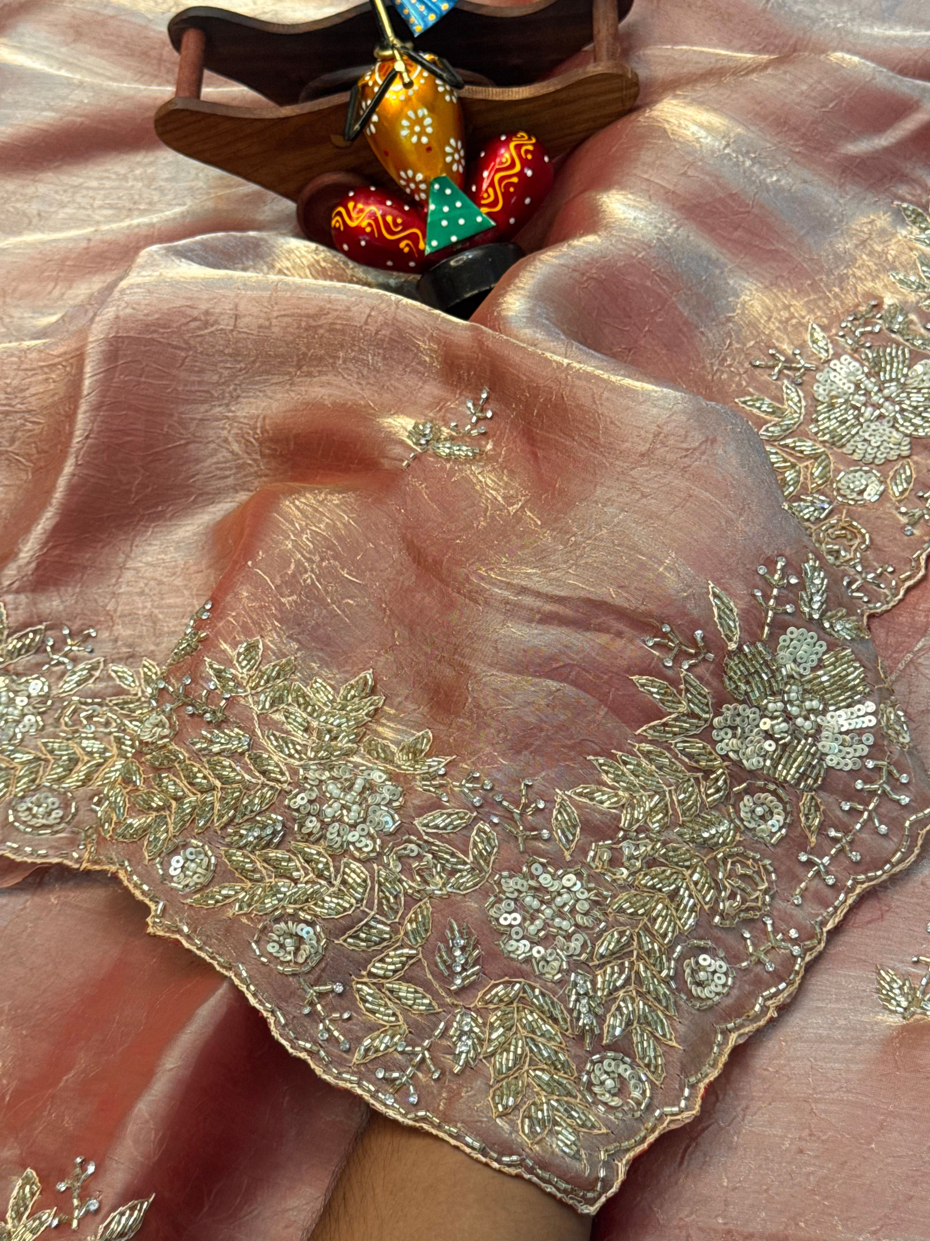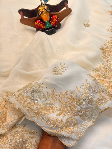 Premium Embroidered Saree with Antique Gold Detailing