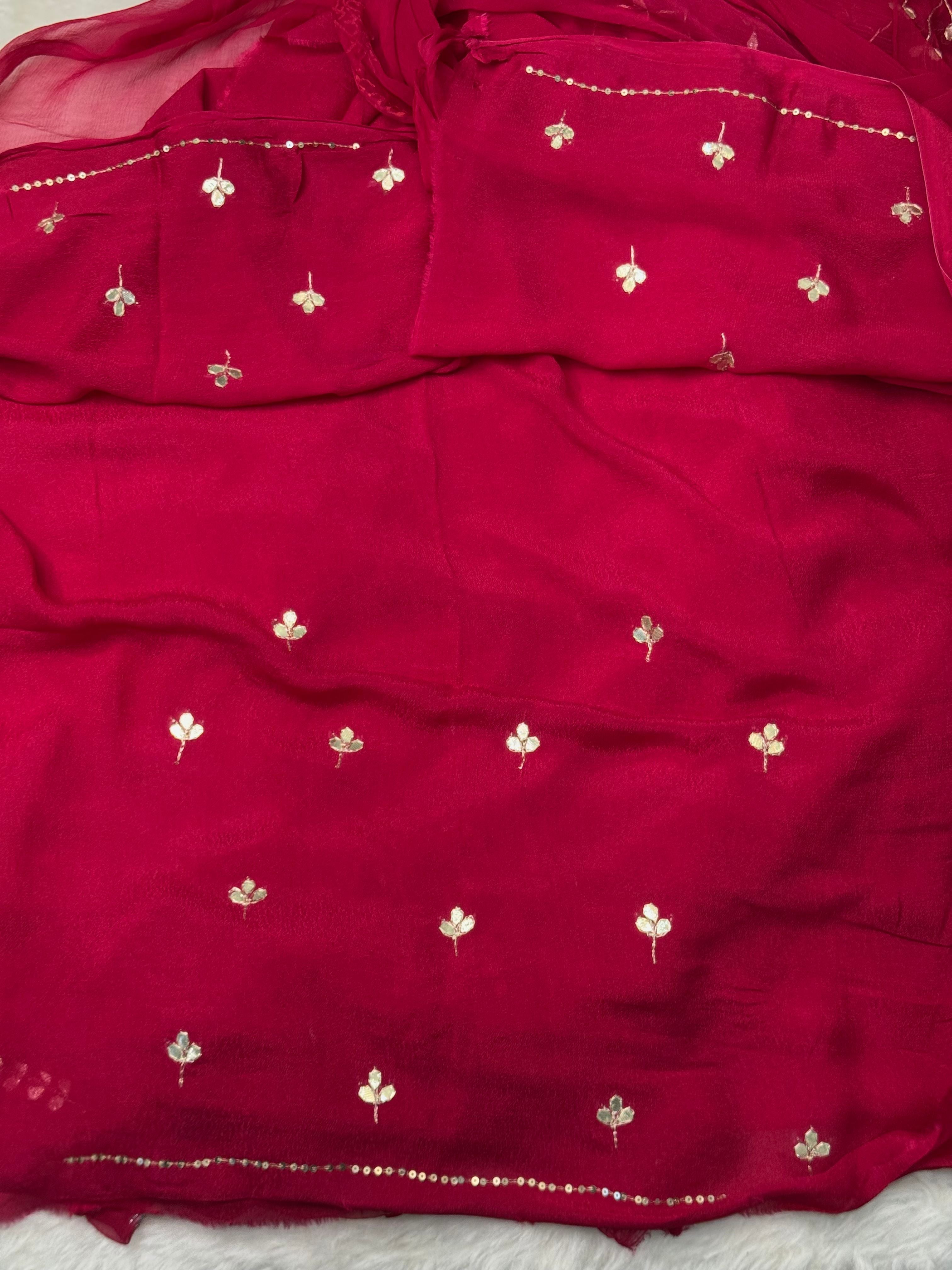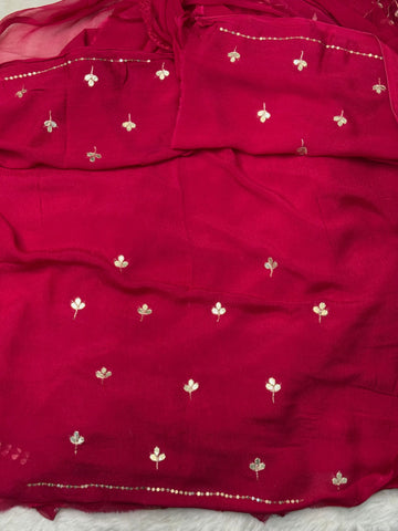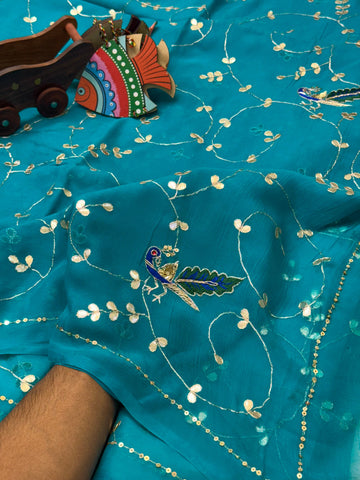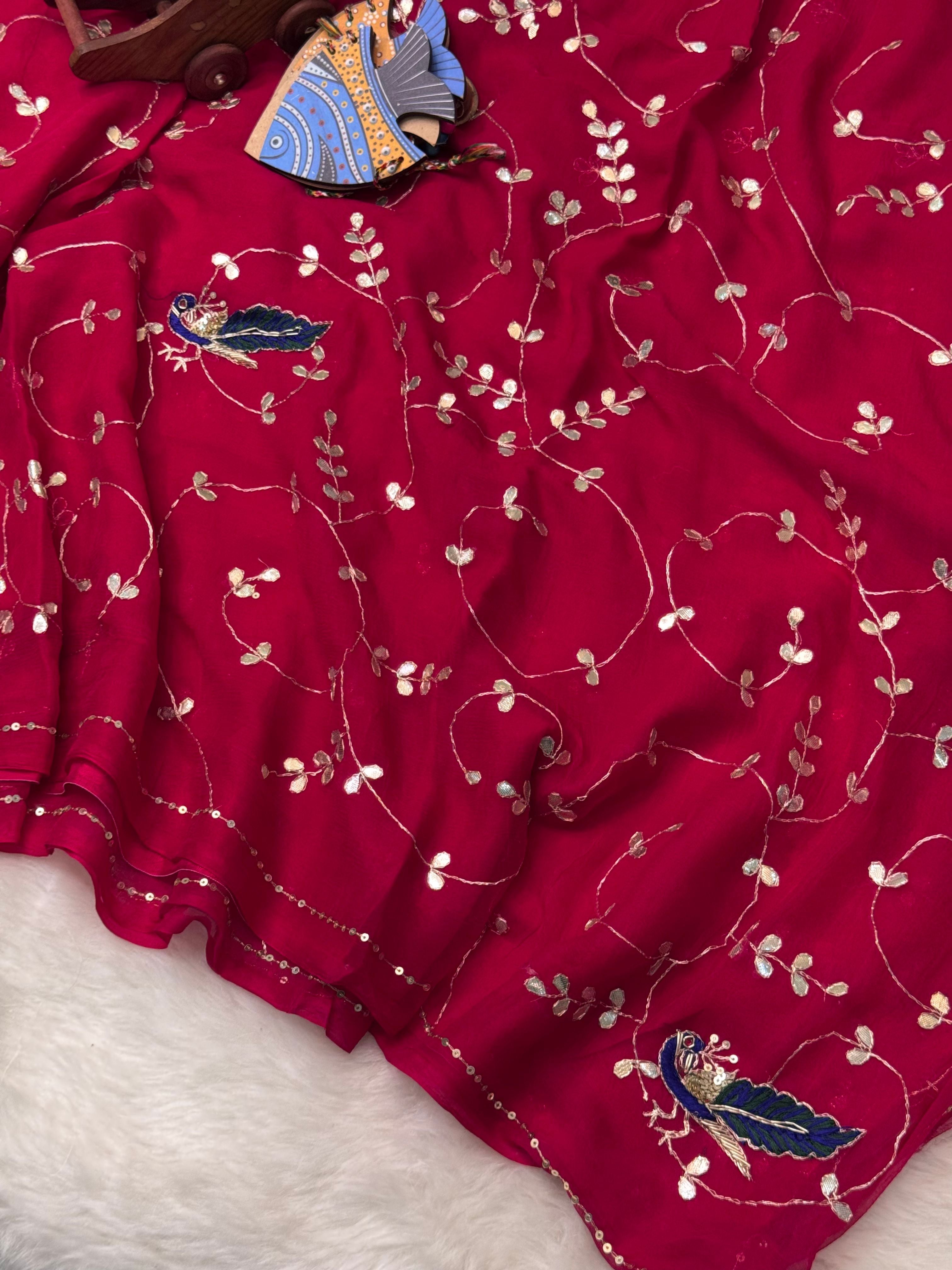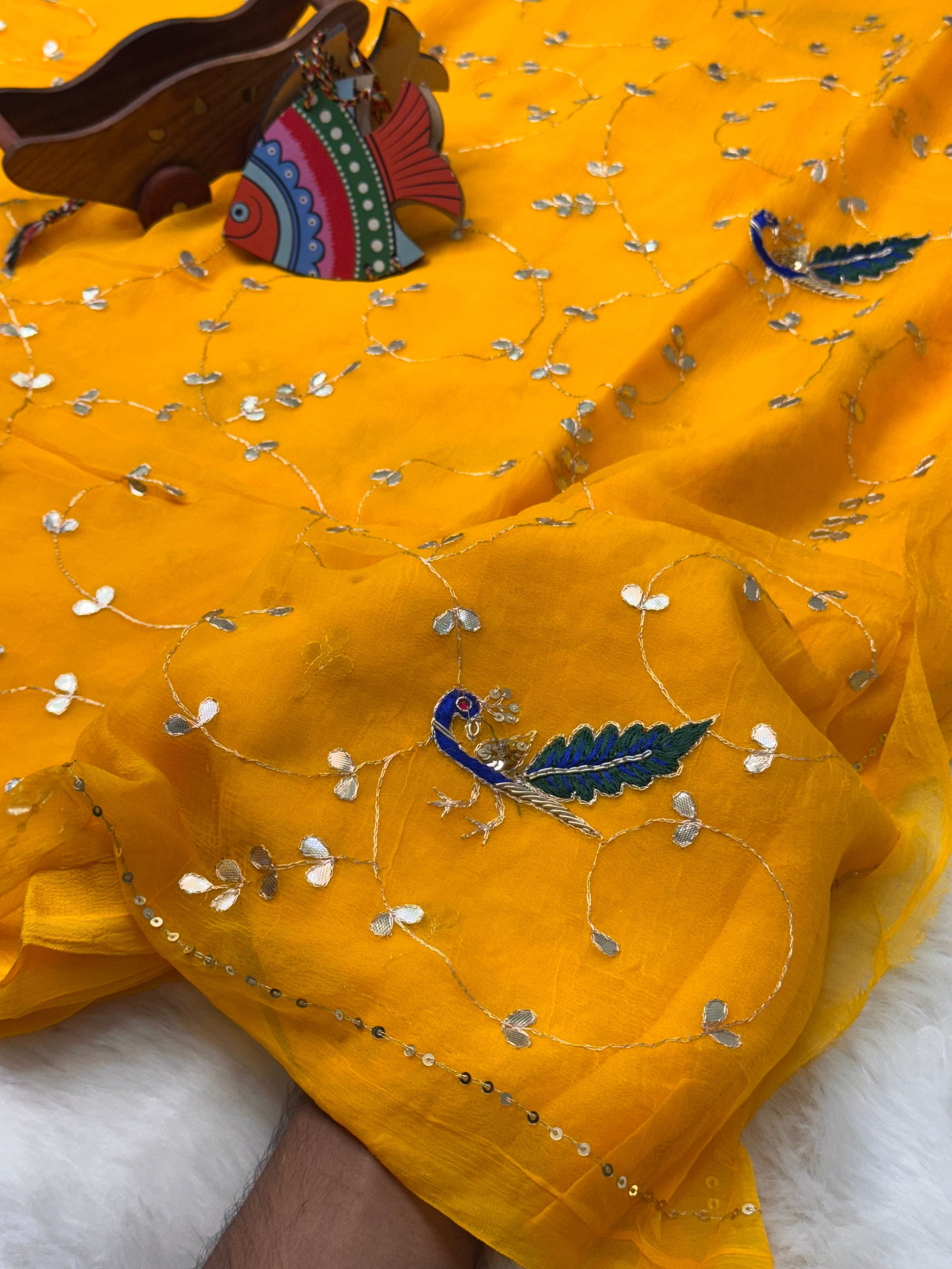 Pure Chiffon Saree with Gotta patti Embroidery & Handcrafted Peacock Motifs
