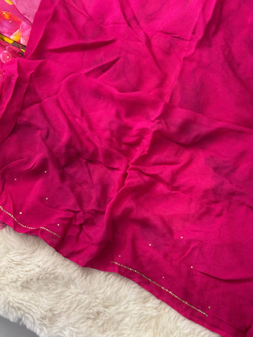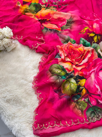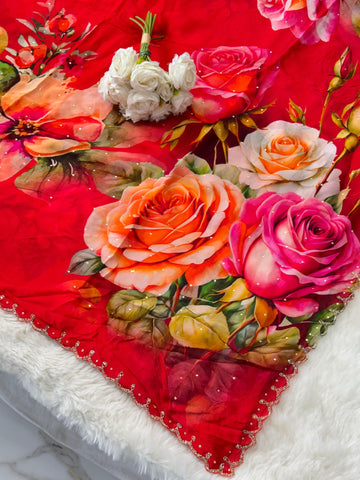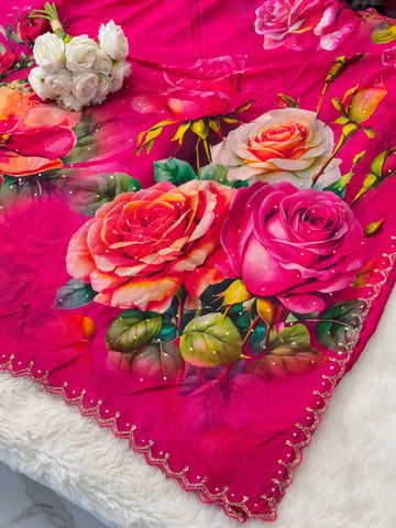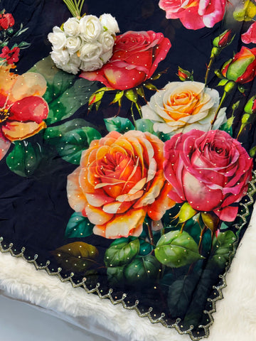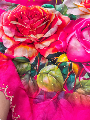 Chinon Saree with Multicolor Bold Rose Floral Print