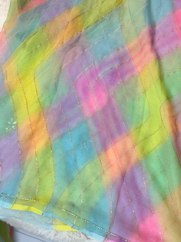 πŸ’« Add a pop of dreamy pastels to your wardrobe with our Rainbow Chiffon Saree.