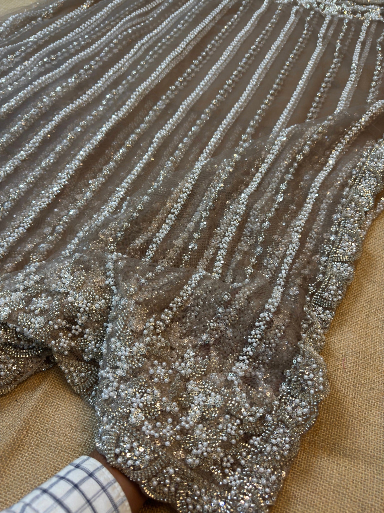 • 🀍 All-over pearl & sequin striped embroidery