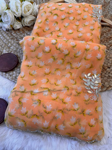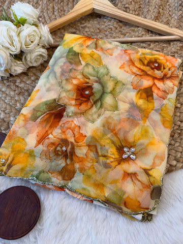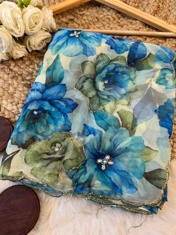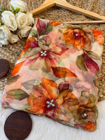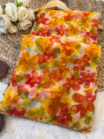 Printed Floral Saree Collection with Pearl Border & contrast blouse