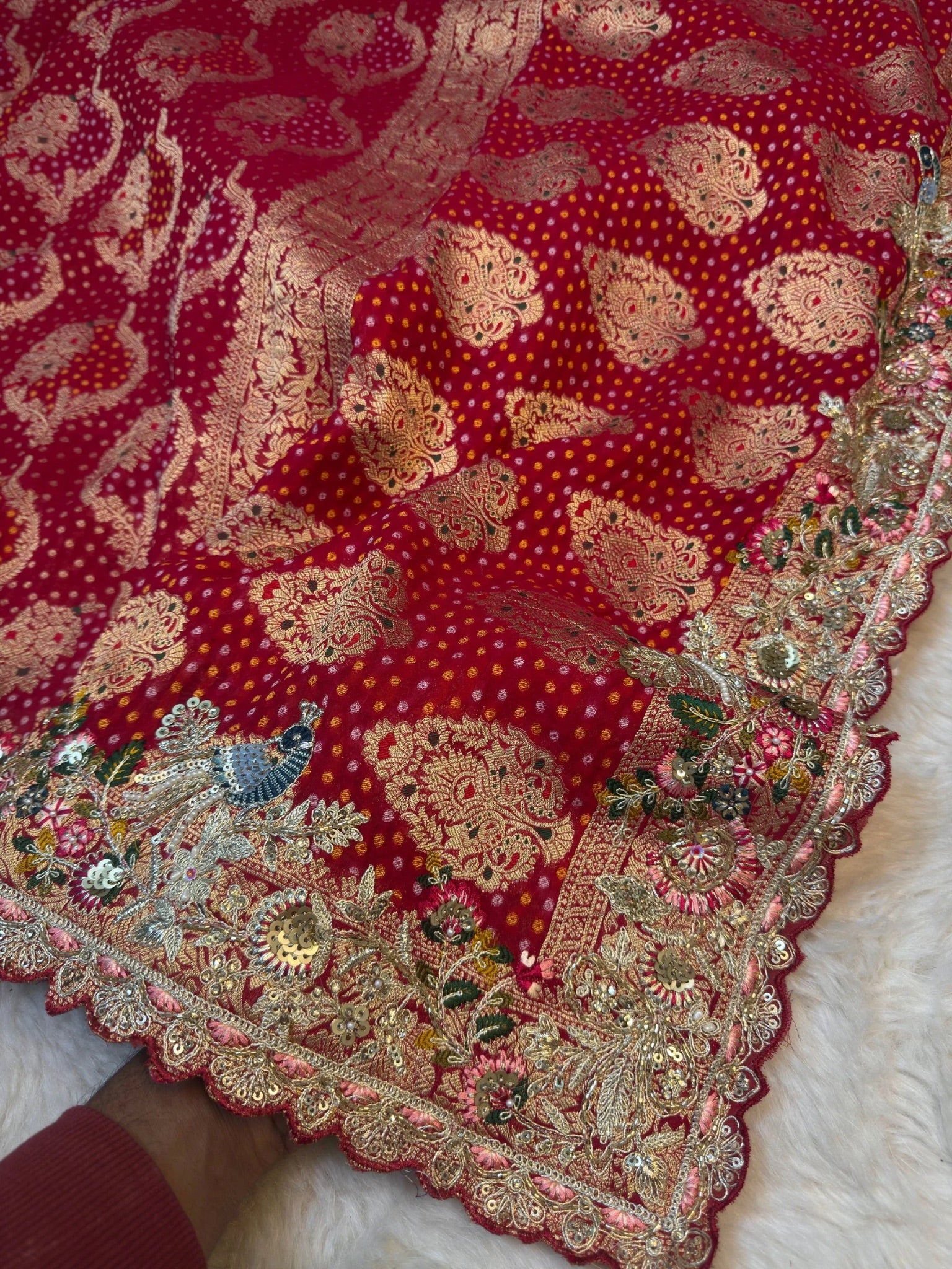 Work: Bandhani Pattern with Heavy Embroidered Border