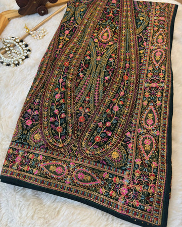 Each piece showcases royal Kashmiri artistry with dense stitching and grand borders that add regal charm and luxury.