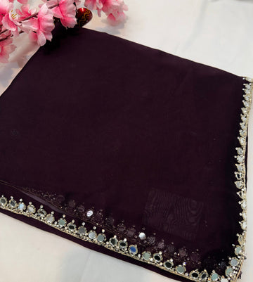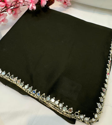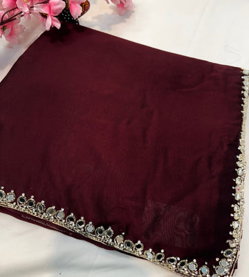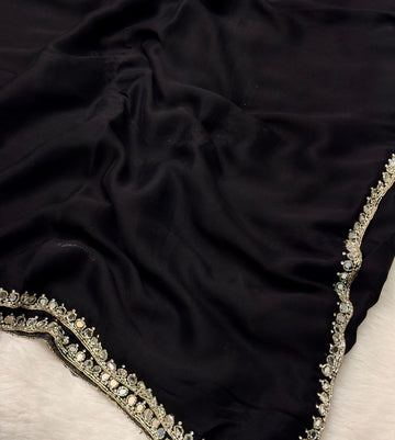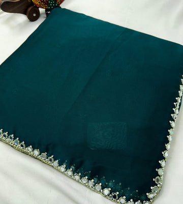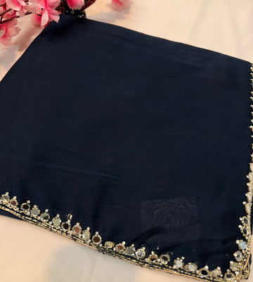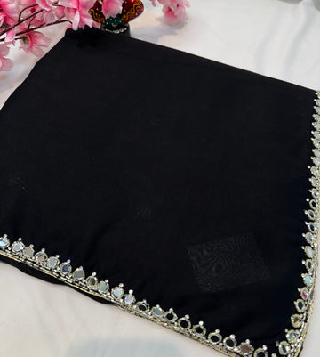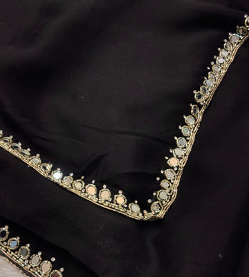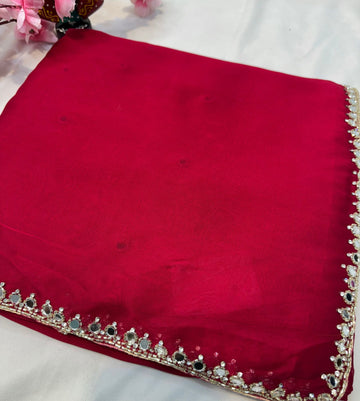 Turn heads wherever you go in our luxurious Rangoli Silk sarees, finished with intricate mirror work on the border and paired with a matching unstitched blouse. The shimmering mirrors are hand-crafted into an elegant scalloped edge, giving the saree a rich, festive appeal. Whether you're dressing for a sangeet night, reception, or any special moment — this saree will become your showstopper piece.