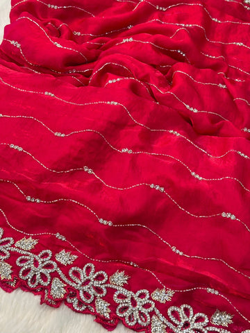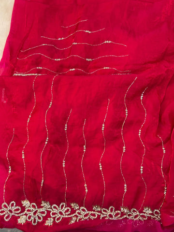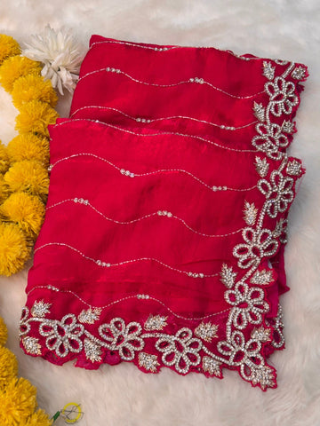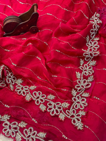 Embroidered Fendy Silk Saree with Circular Handwork & Border
