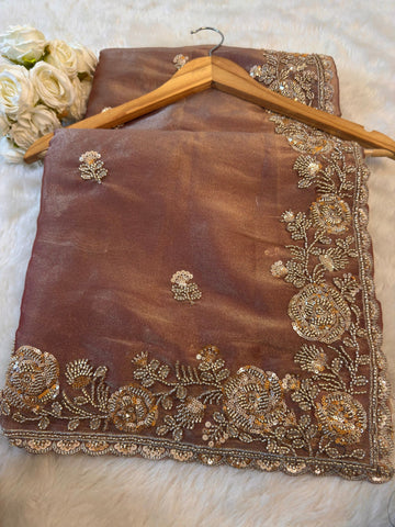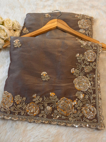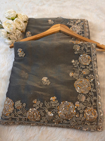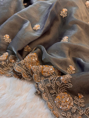 Galaxy Silk Saree with Sequin Floral Embroidery & Scalloped Border