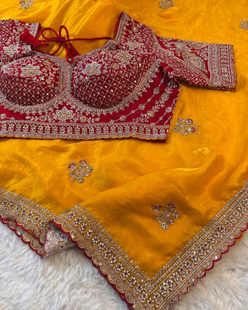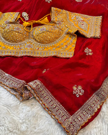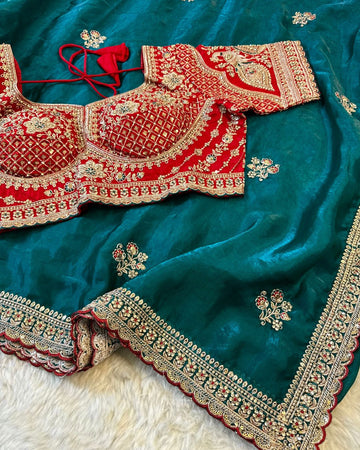 Embroidered Fendy Silk Saree with Contrasting Readymade Blouse – Jyoti Sarees Exclusive