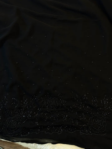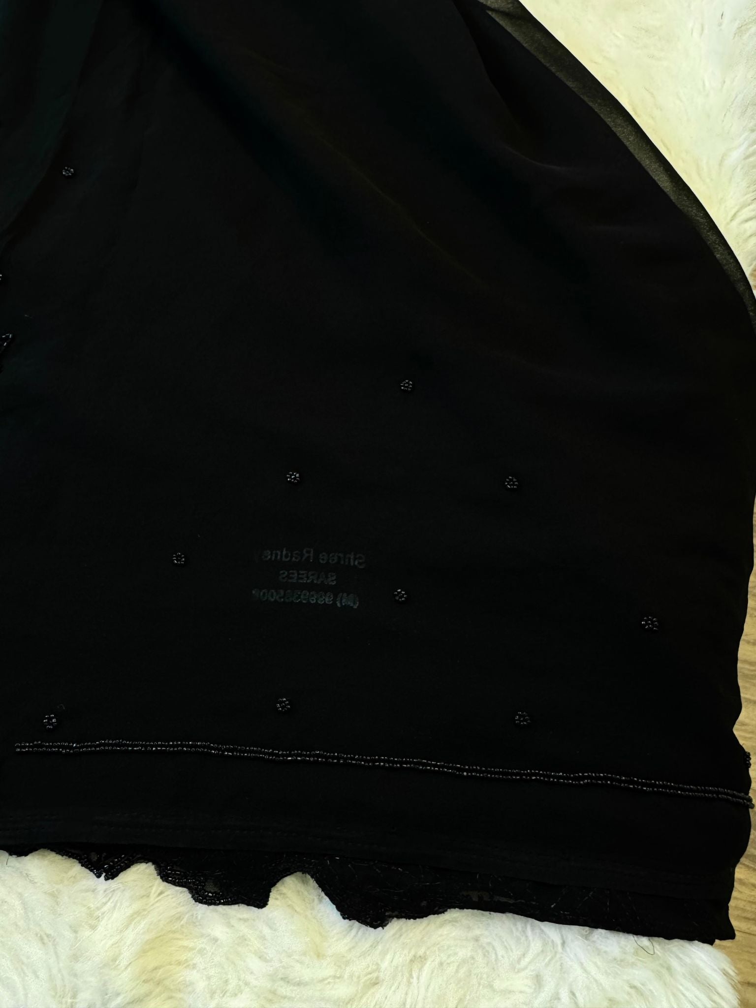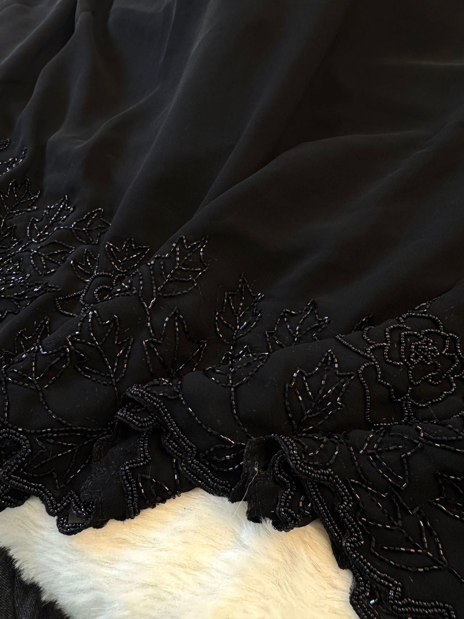 Elegant Black Saree with Beaded Floral Embroidery & Scalloped Border
