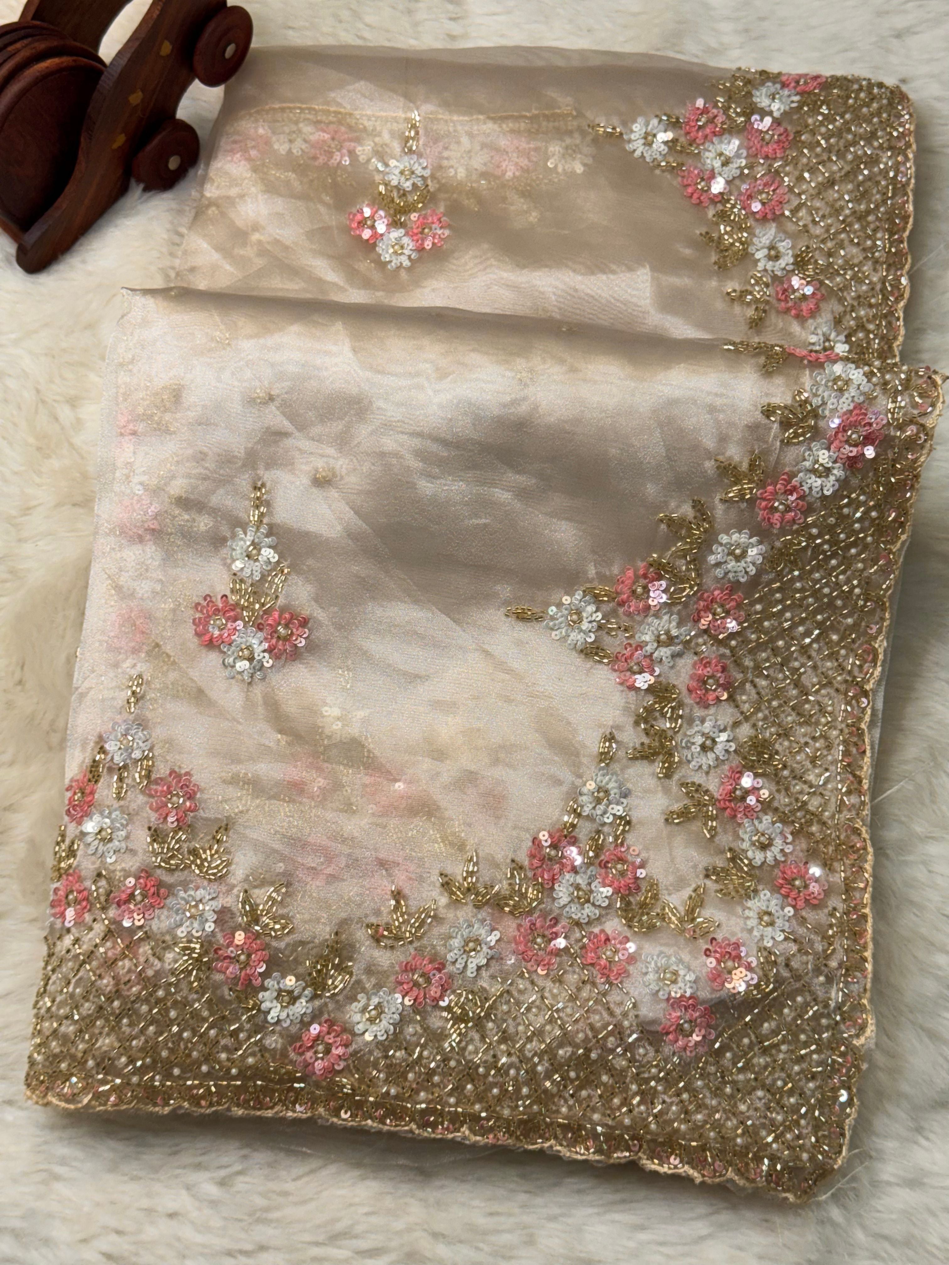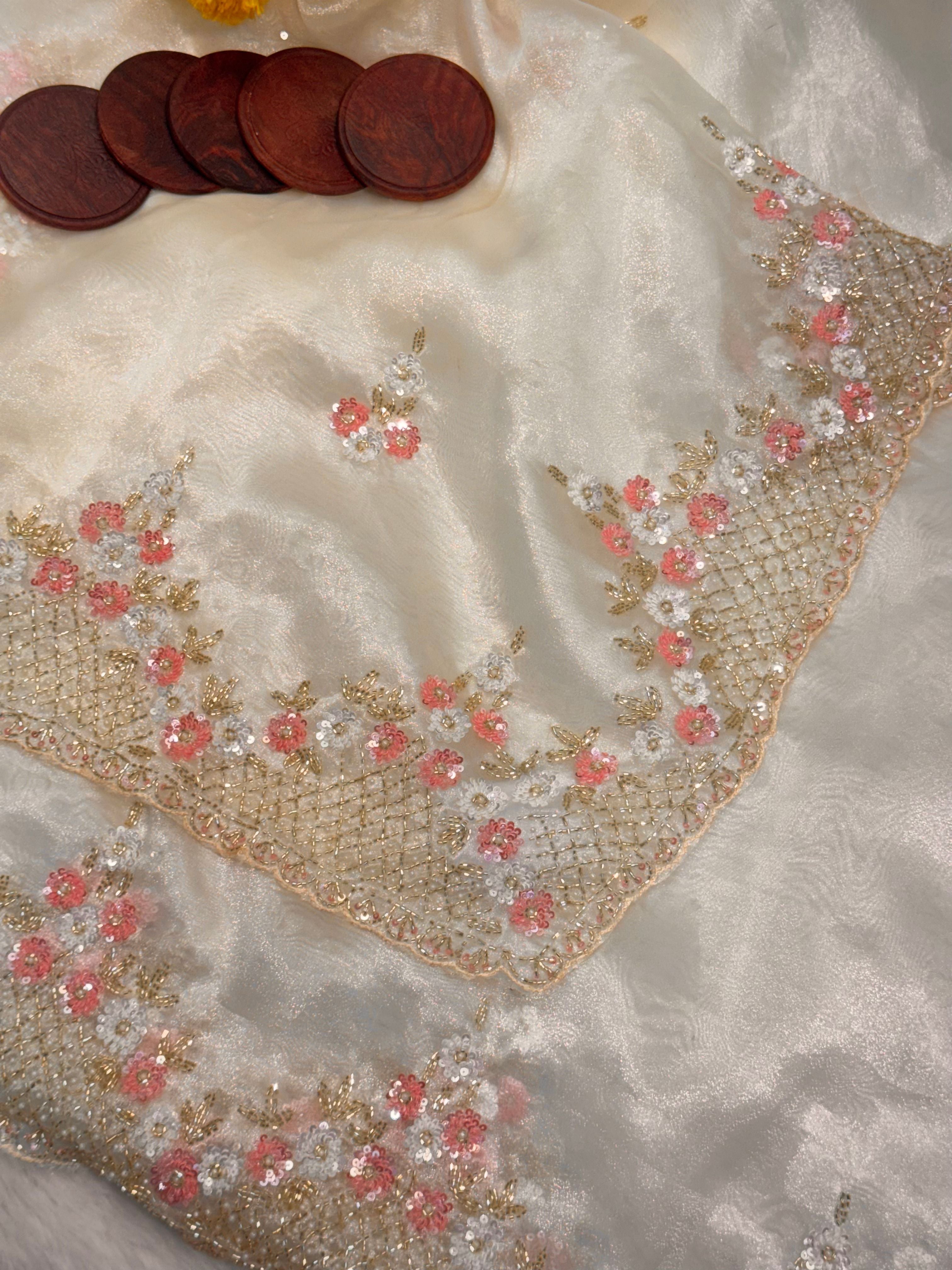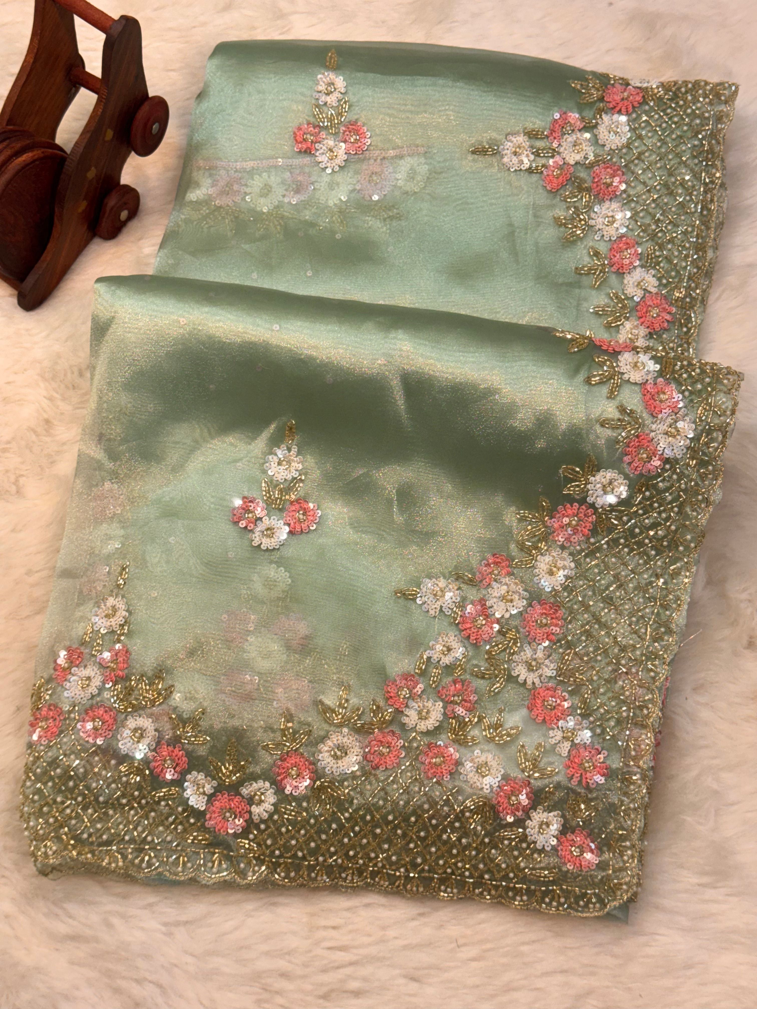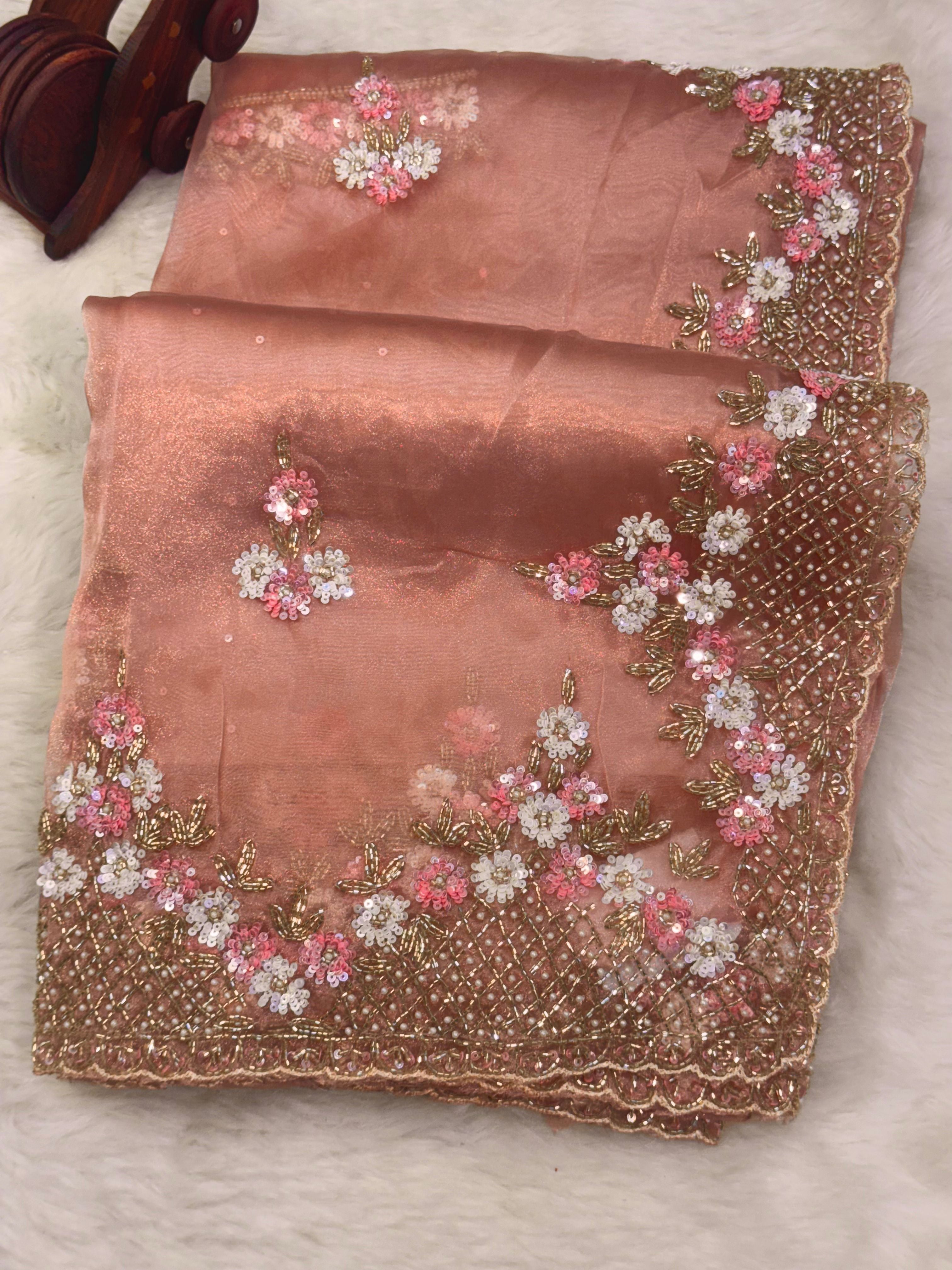Premium Mausam Tissue Saree – Multicolor Sequin & Bead Hand Embroidery