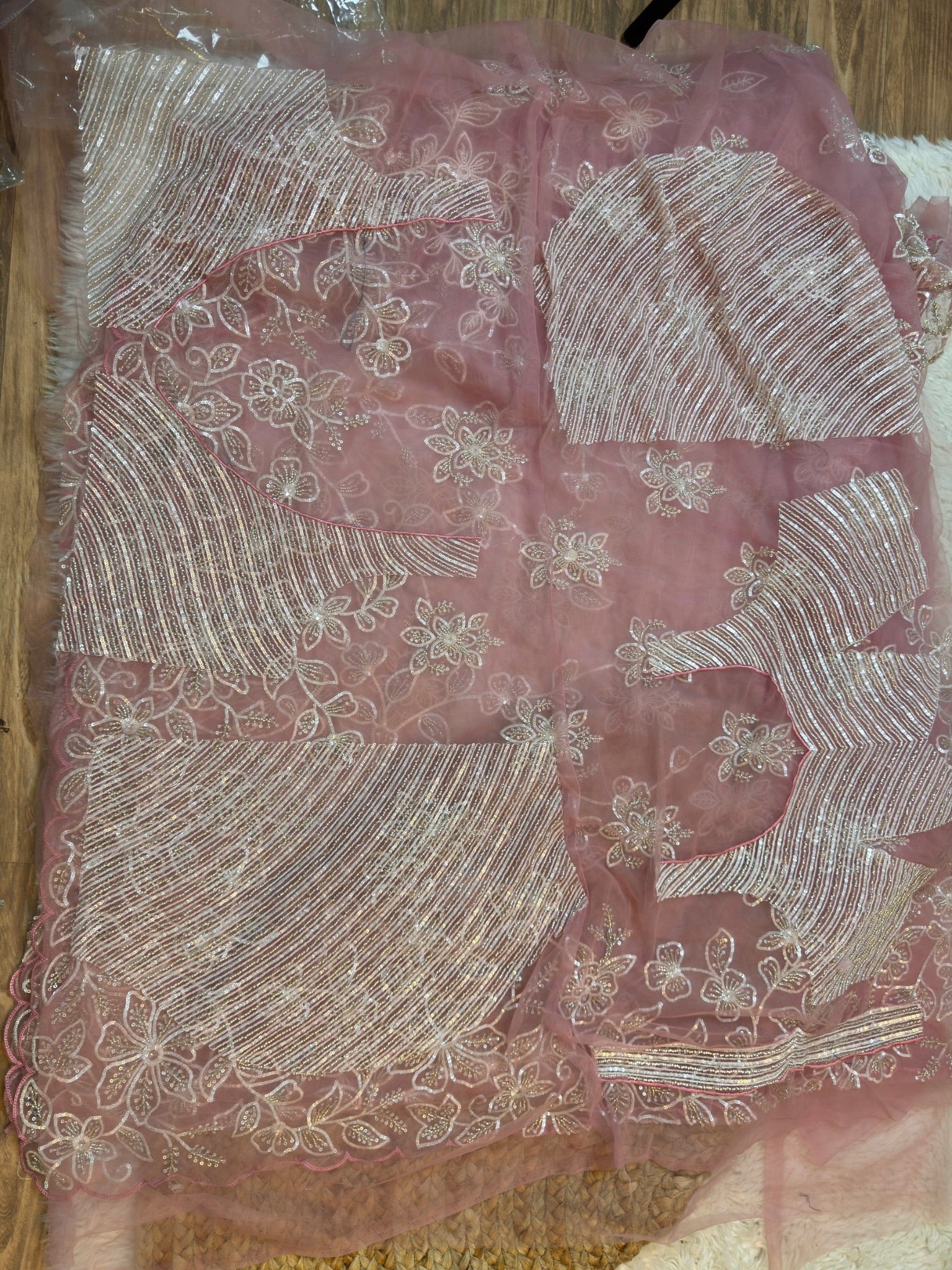 ✨ Graceful party & festive wear saree crafted in soft premium net fabric, highlighted with heavy floral embroidery and sparkling sequin detailing all over.