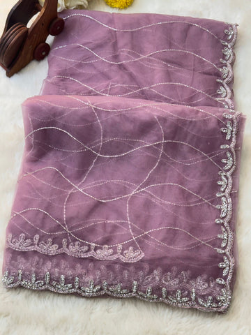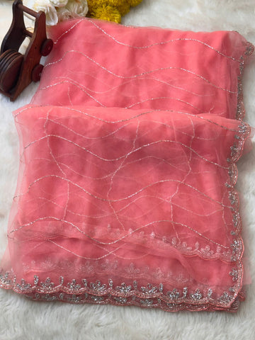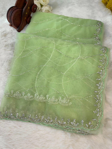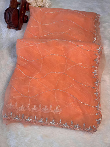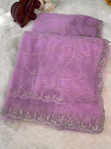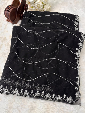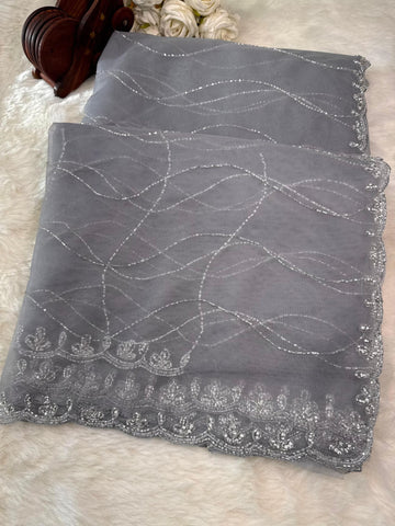 Net Saree with Wavy Sequin Embroidery & Designer Border