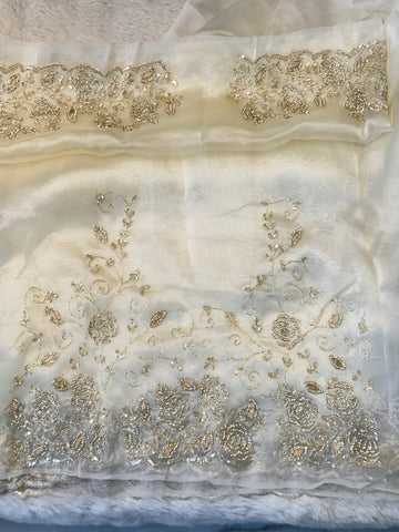 βœ”οΈ Heavy embroidered rose pattern border in sequins & zari