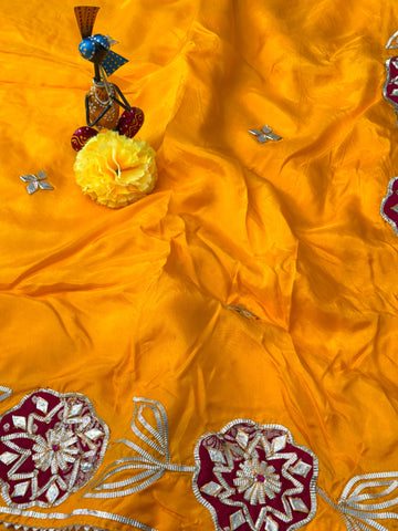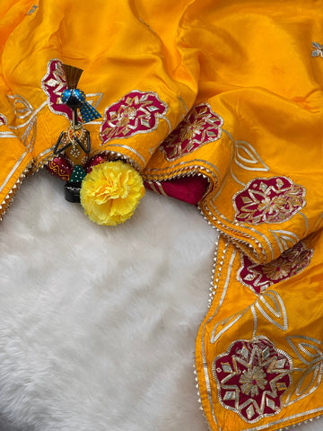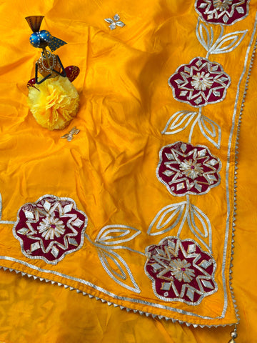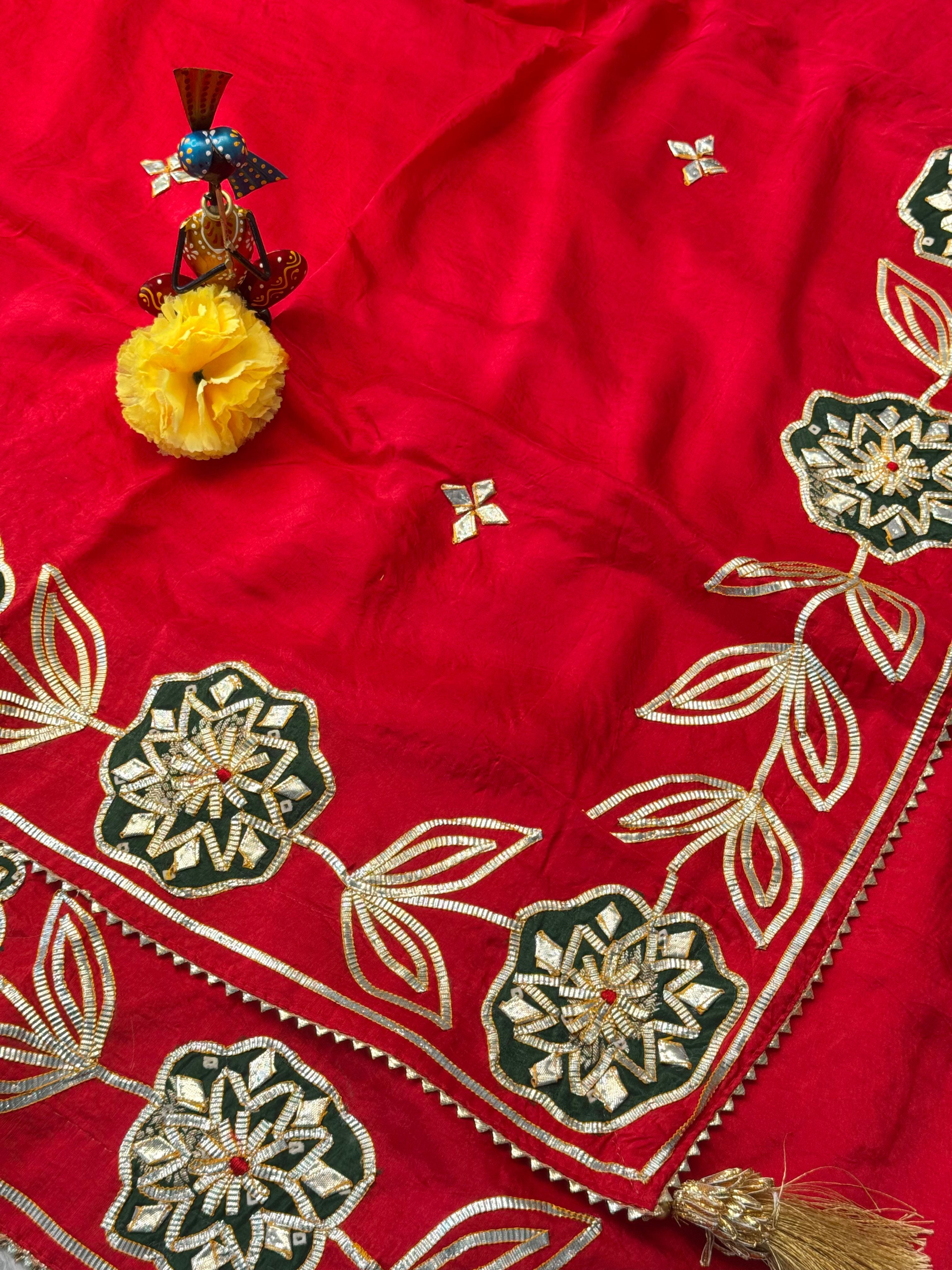 Dola Silk Saree with Gota & Embellished Floral Border and Butti Work