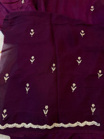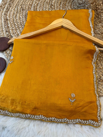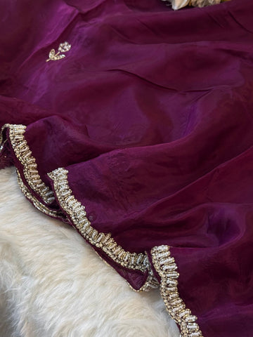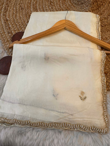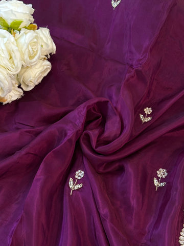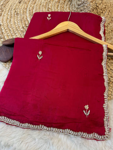 Premium HO Silk Saree with Floral Hand Embroidery & Heavy Cutdana Border