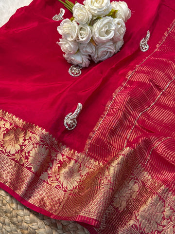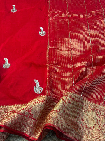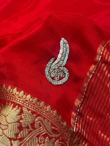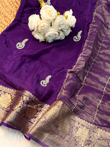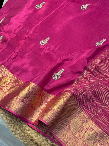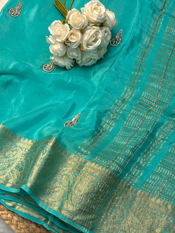 HO Silk Saree with Sequin Paisley Butti & Zari Border