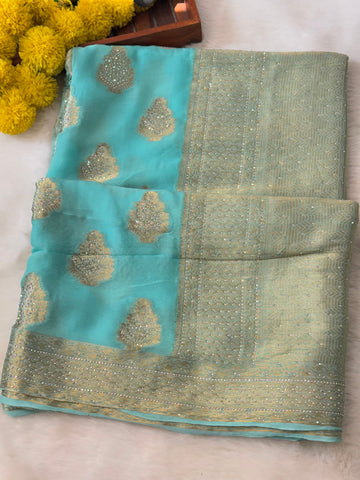 Khaddi Georgette Butti Saree with Zari Border & Sparkling Embellishments