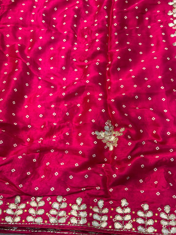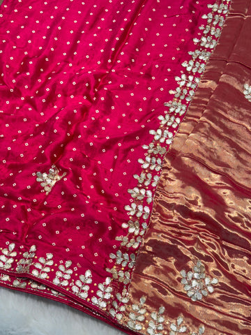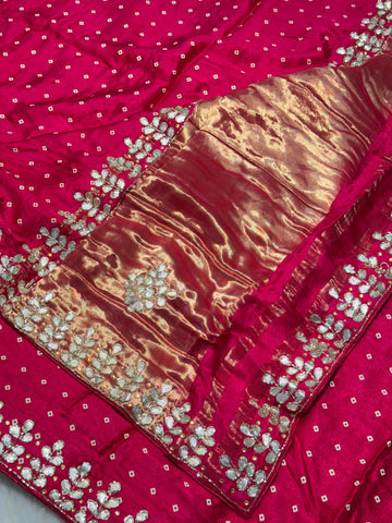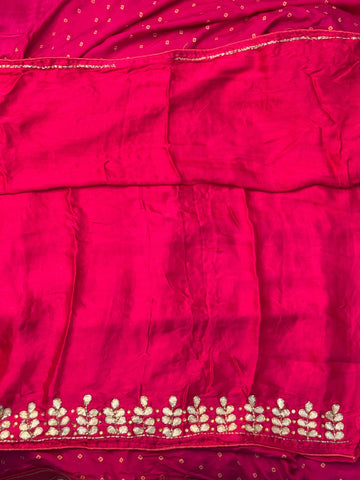 Rani Pink Modal Silk Saree with Zari Butti & Embroidered Border
