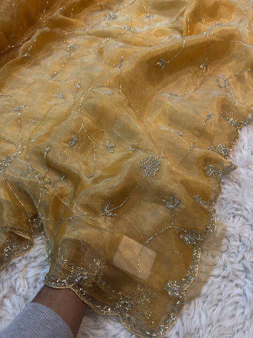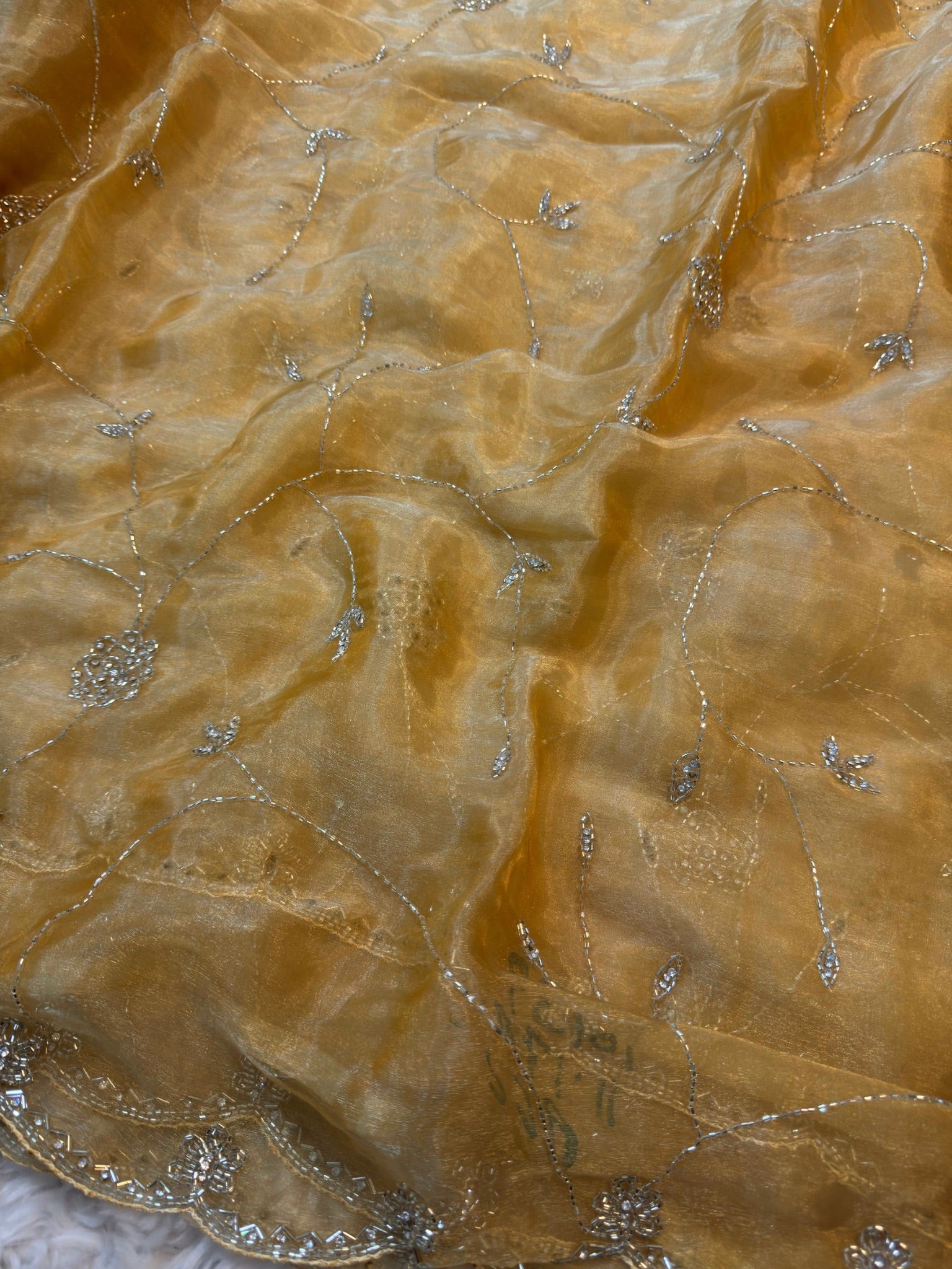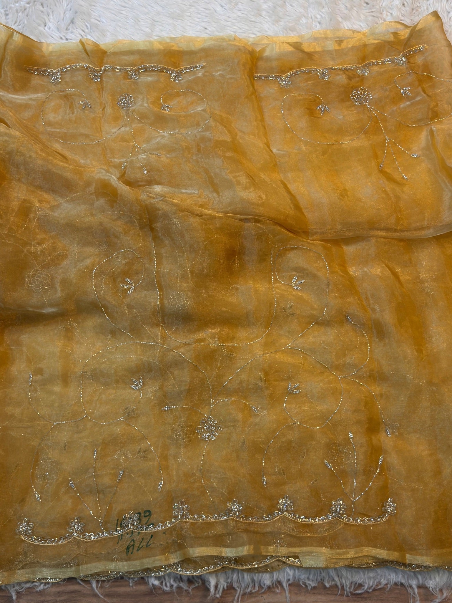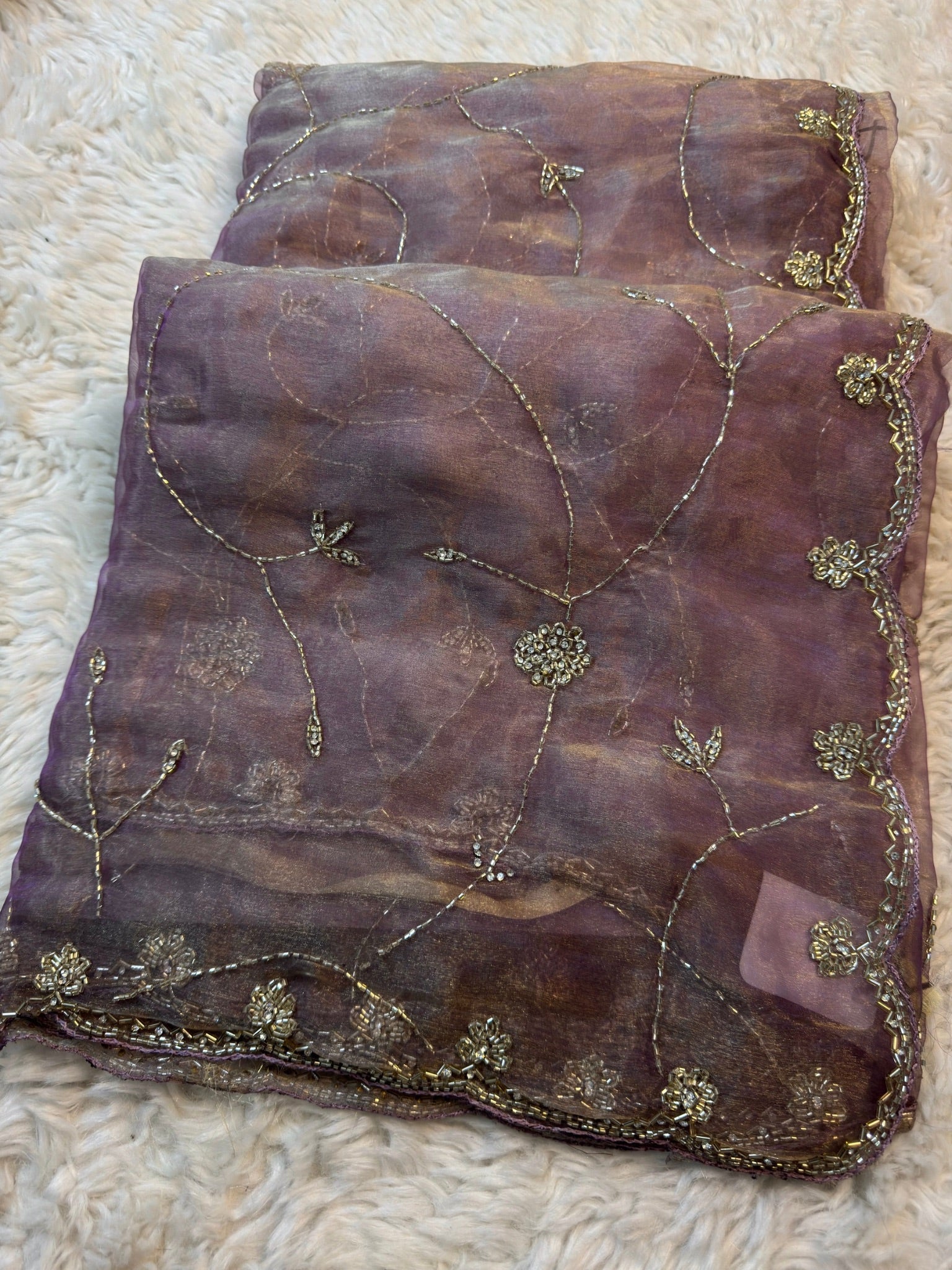 Dolchi Tissue Saree with Floral Hand Embroidery & Designer Border