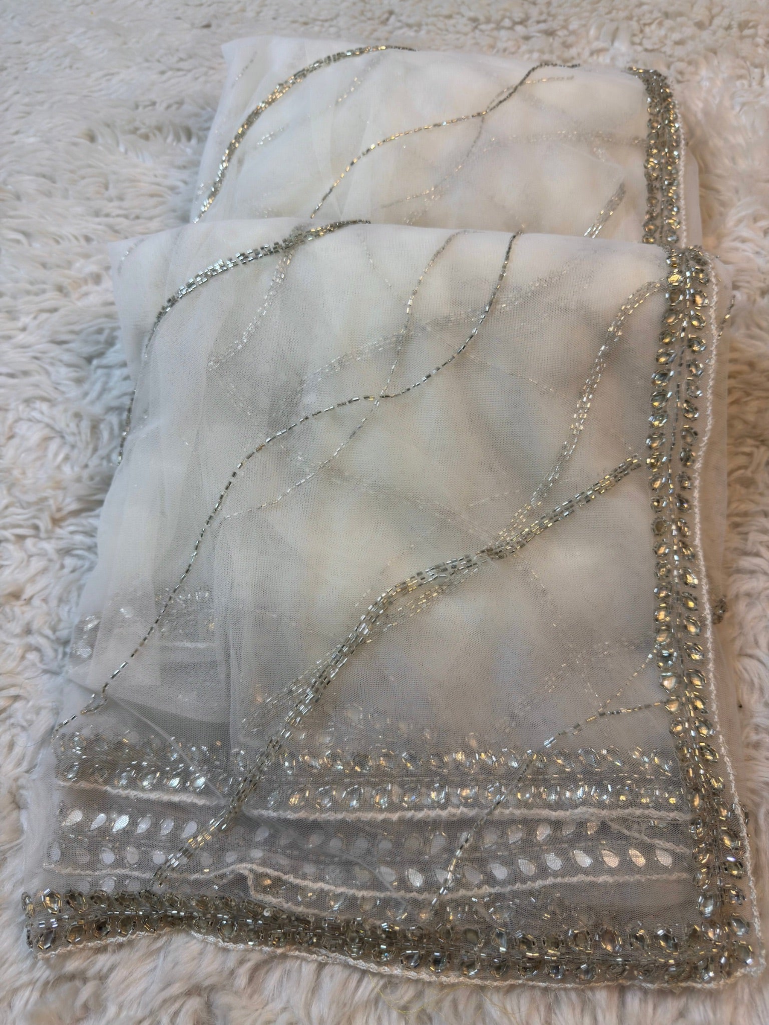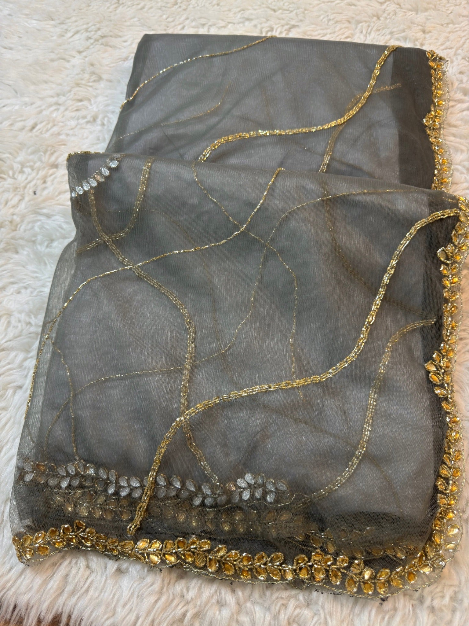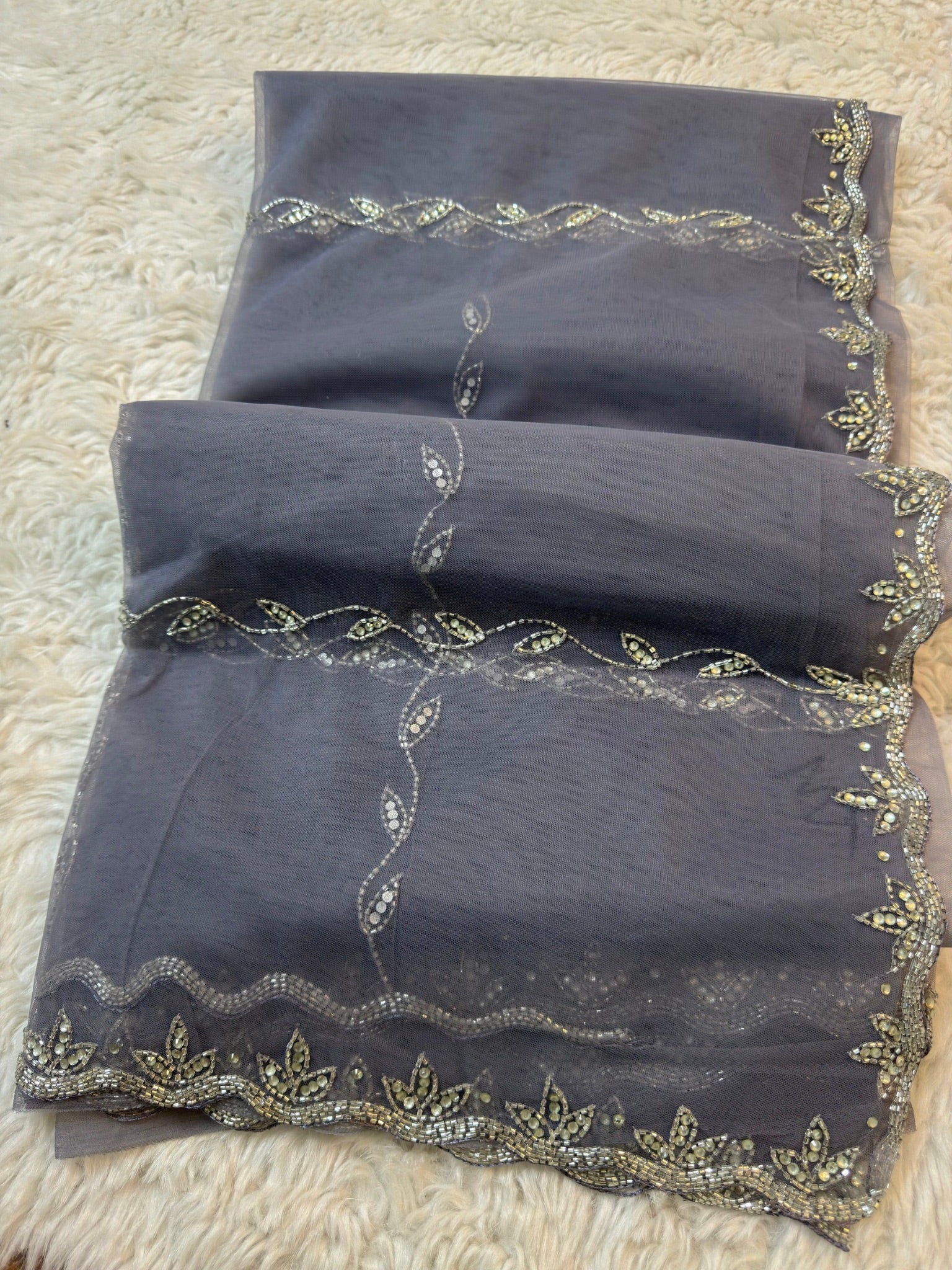 Net Saree with Flowing Cutdana Work & Mirror Border