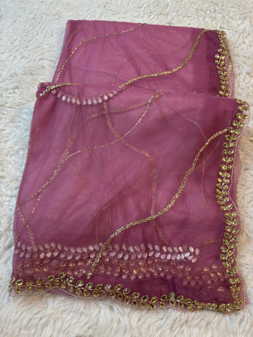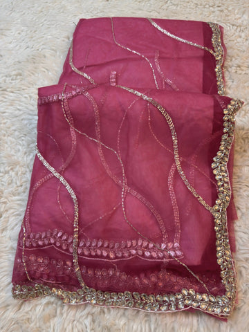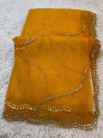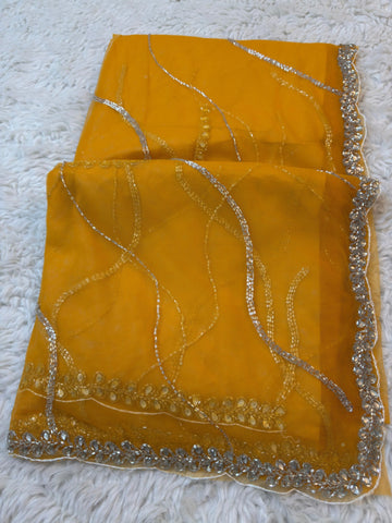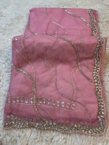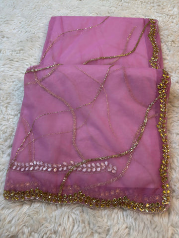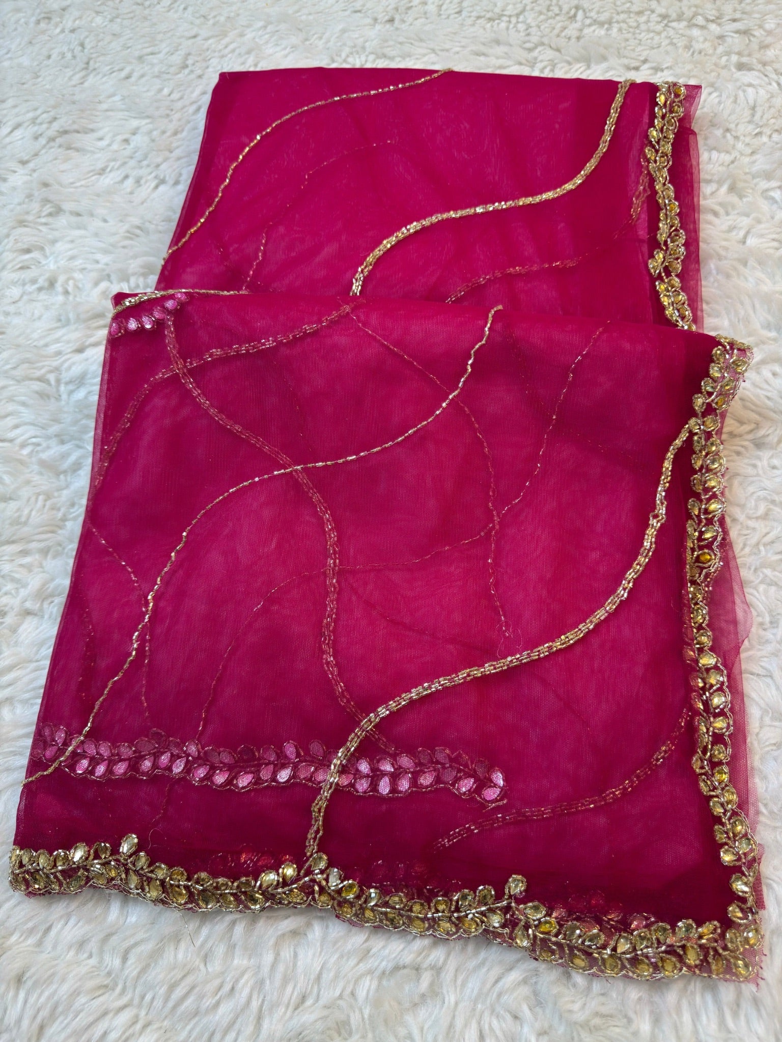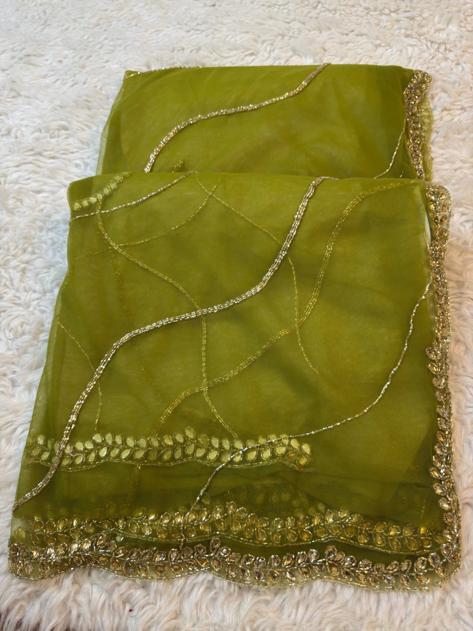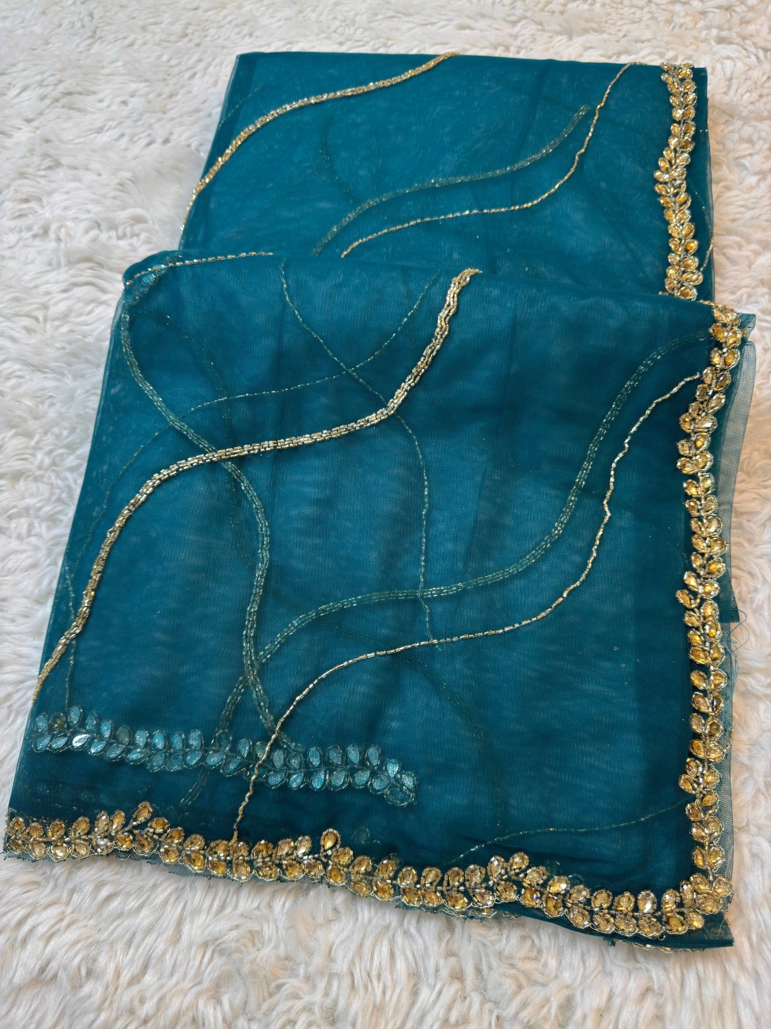 Net Saree with Flowing Cutdana Work & Mirror Border
