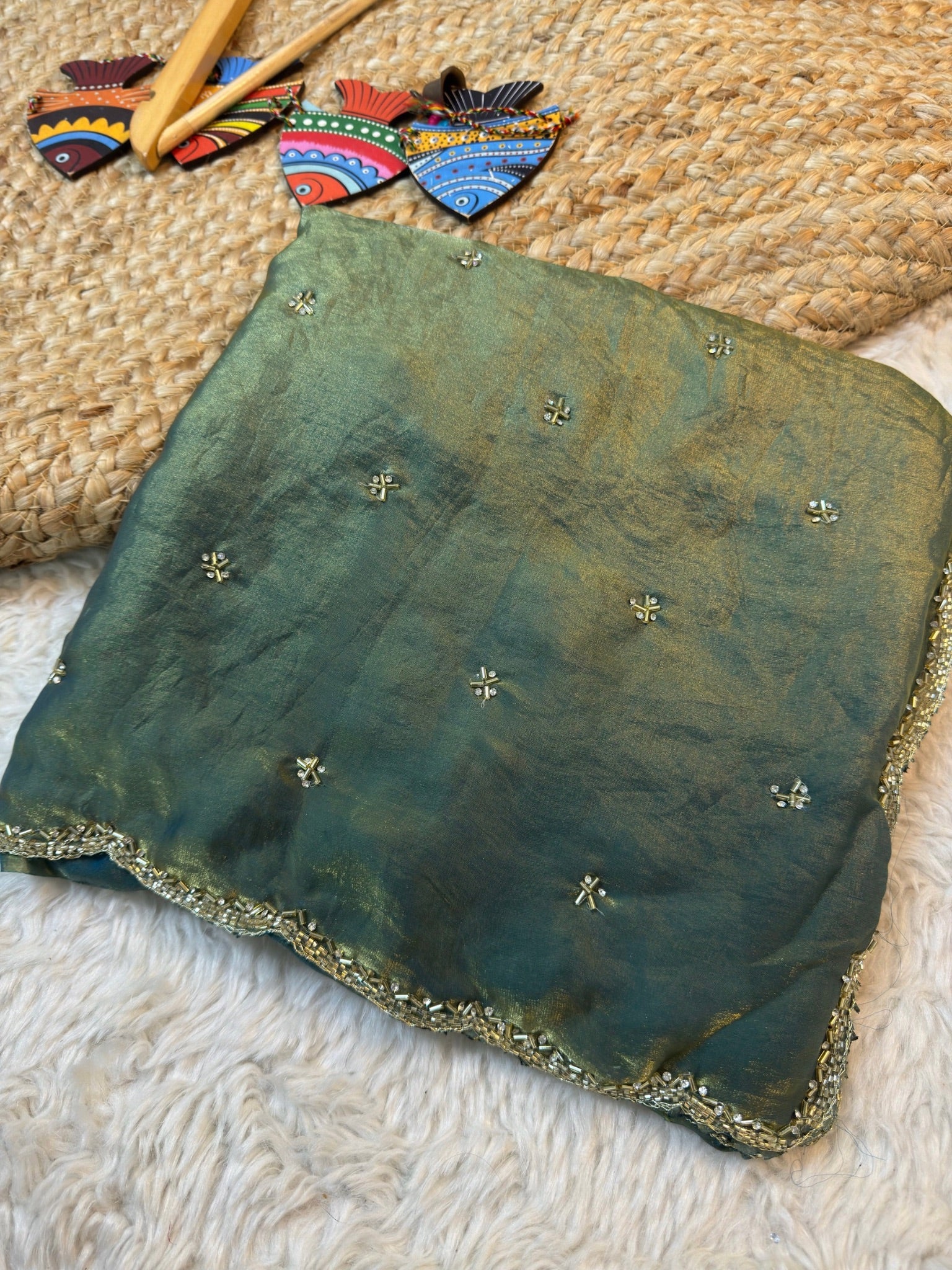 Luxury Fendy Silk Hand Embellished Saree – Mirror Butti & Designer Border