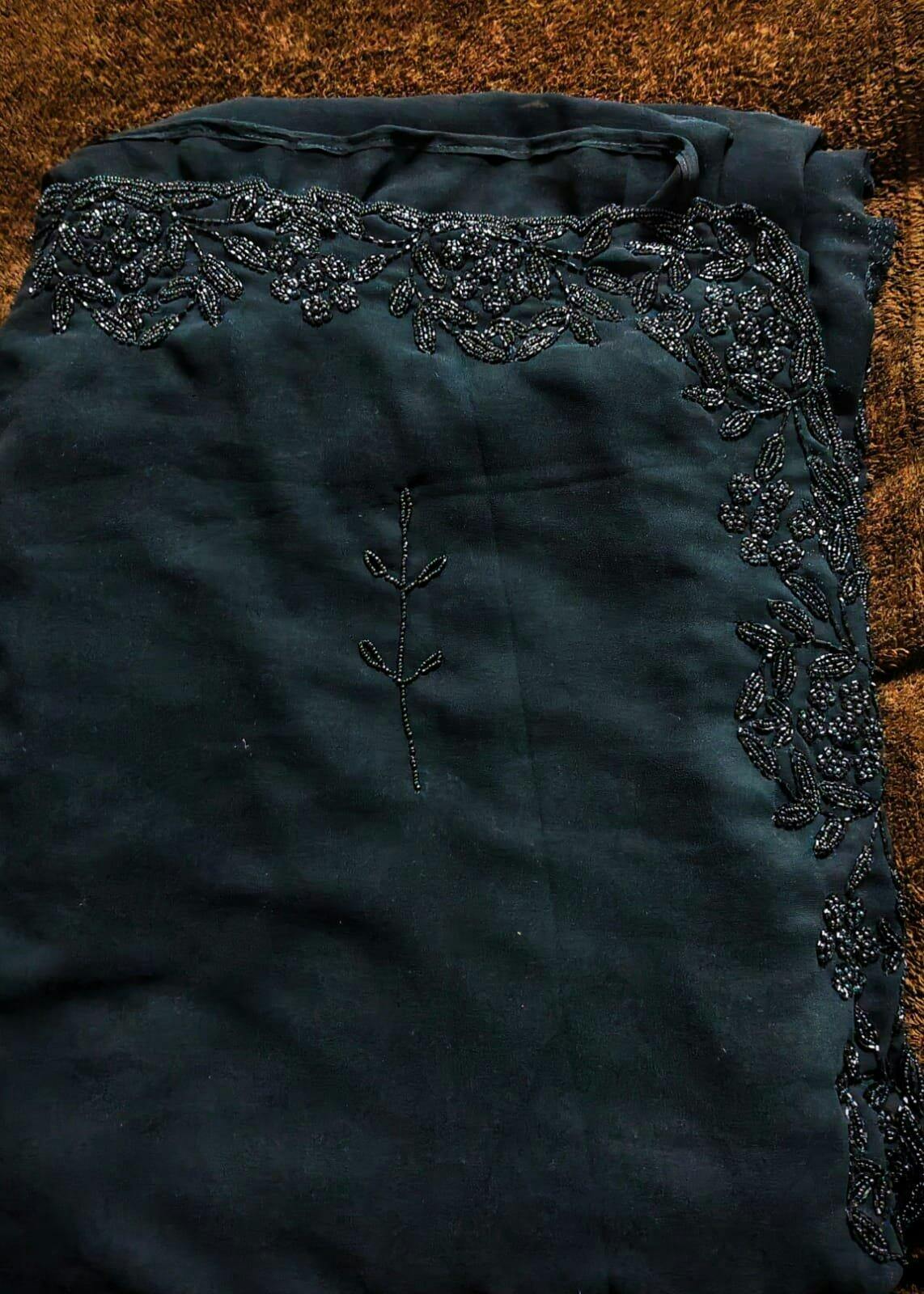 Midnight Black Georgette Saree with Hand Beaded Floral Border