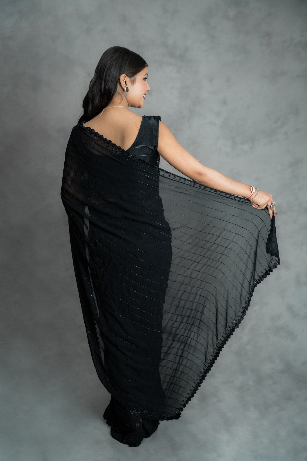 Midnight Black Georgette Saree with Horizontal Cutdana Lines
