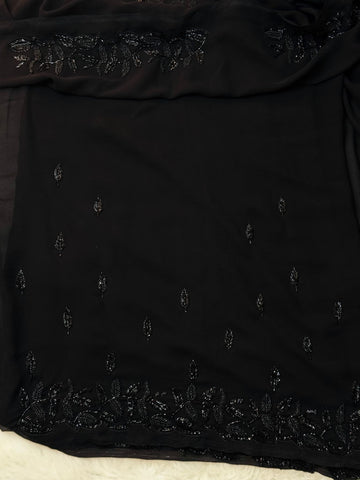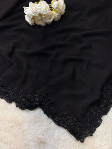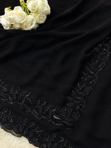 Black Cutdana Handwork Saree with Leaf Embroidery Border