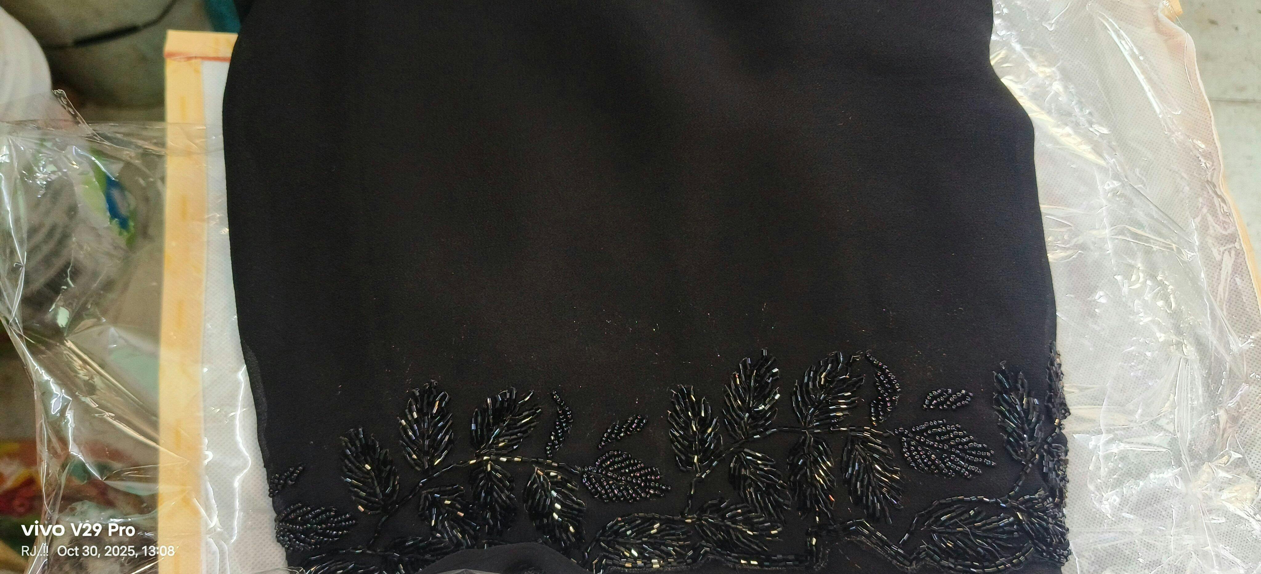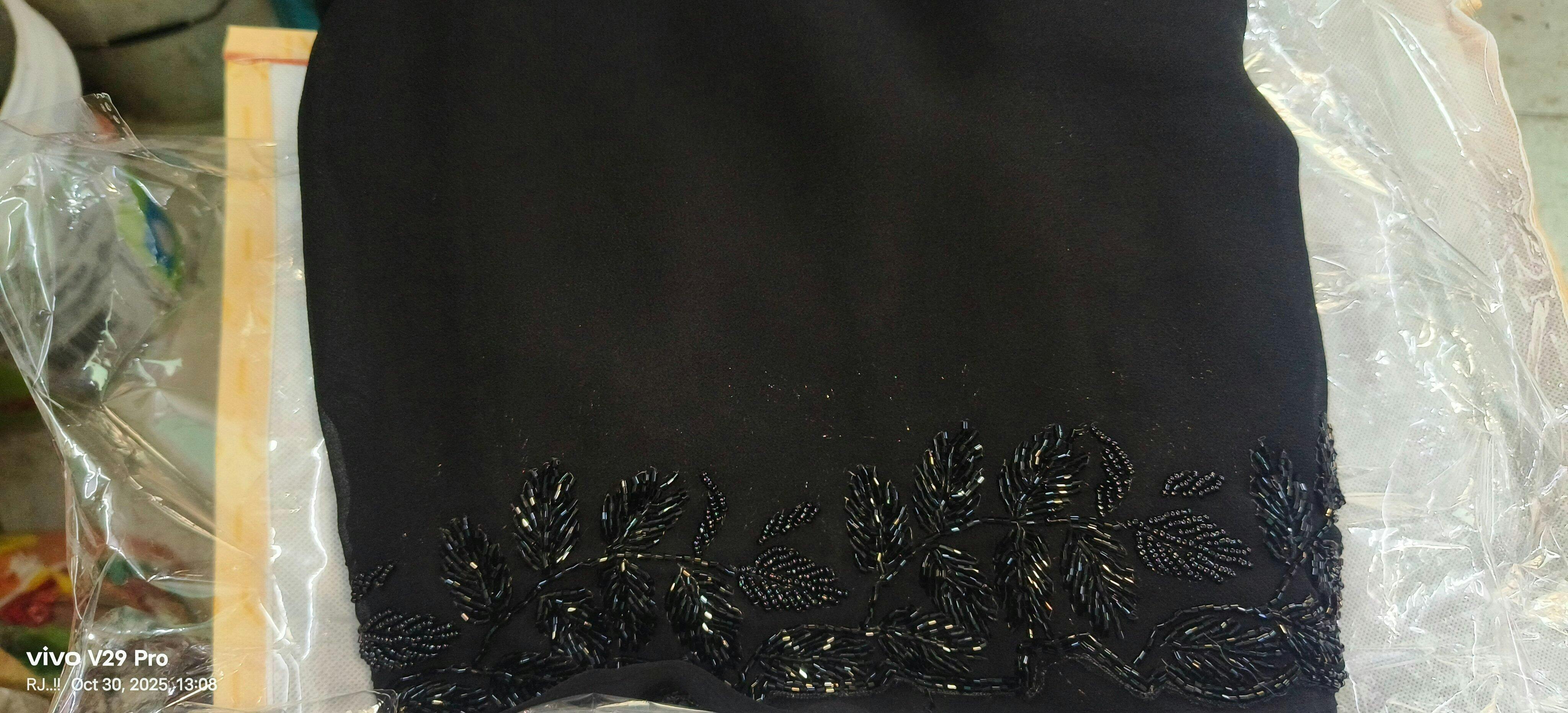 • πŸ–€ Plain black body with minimal scattered cutdana motifs for subtle shimmer