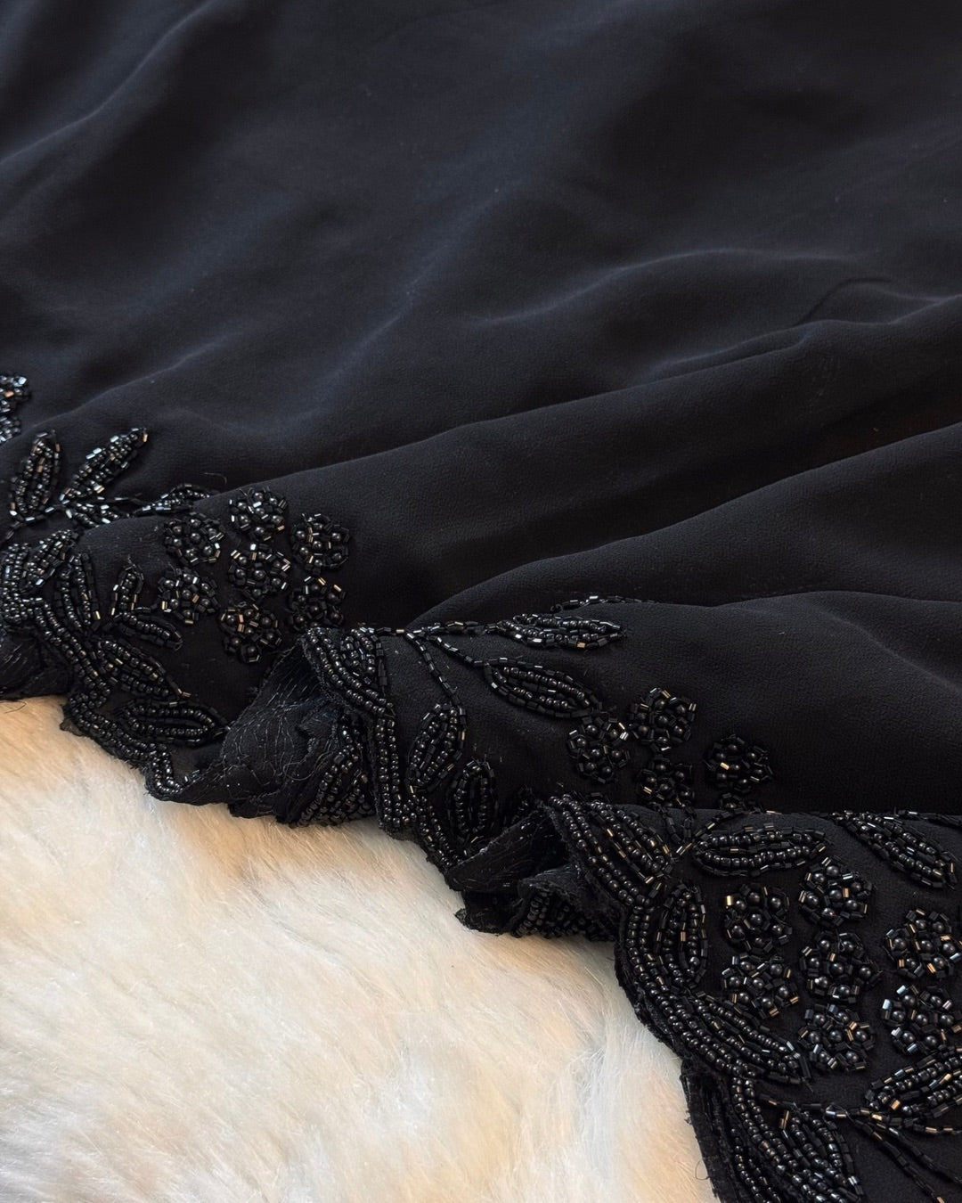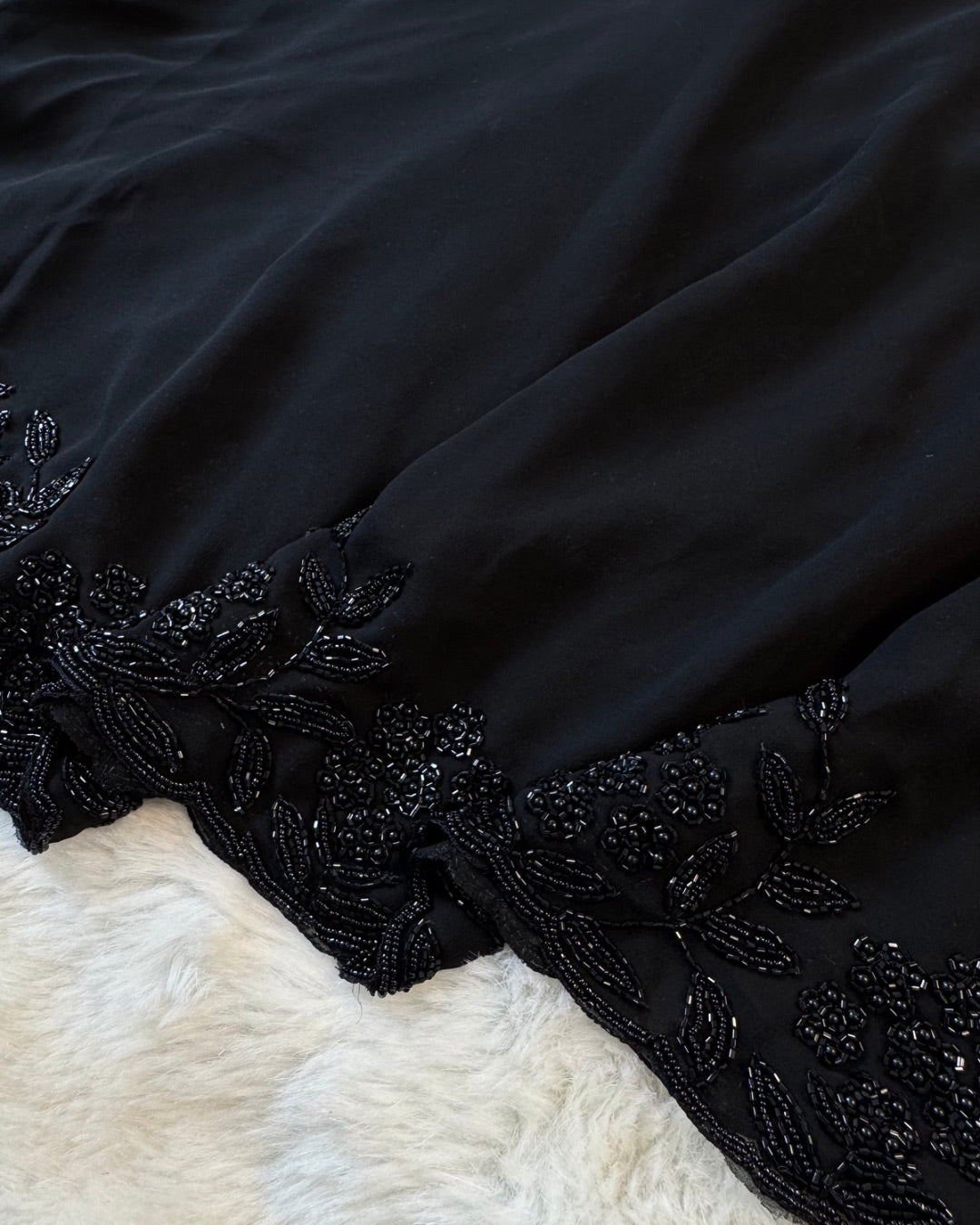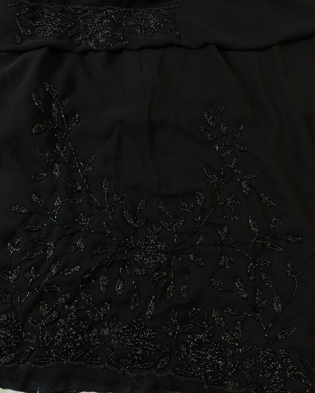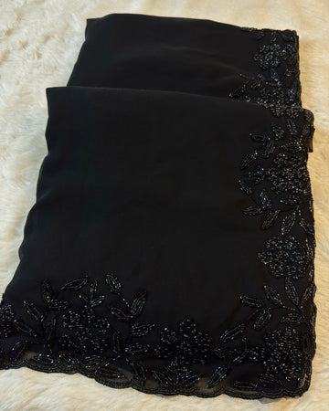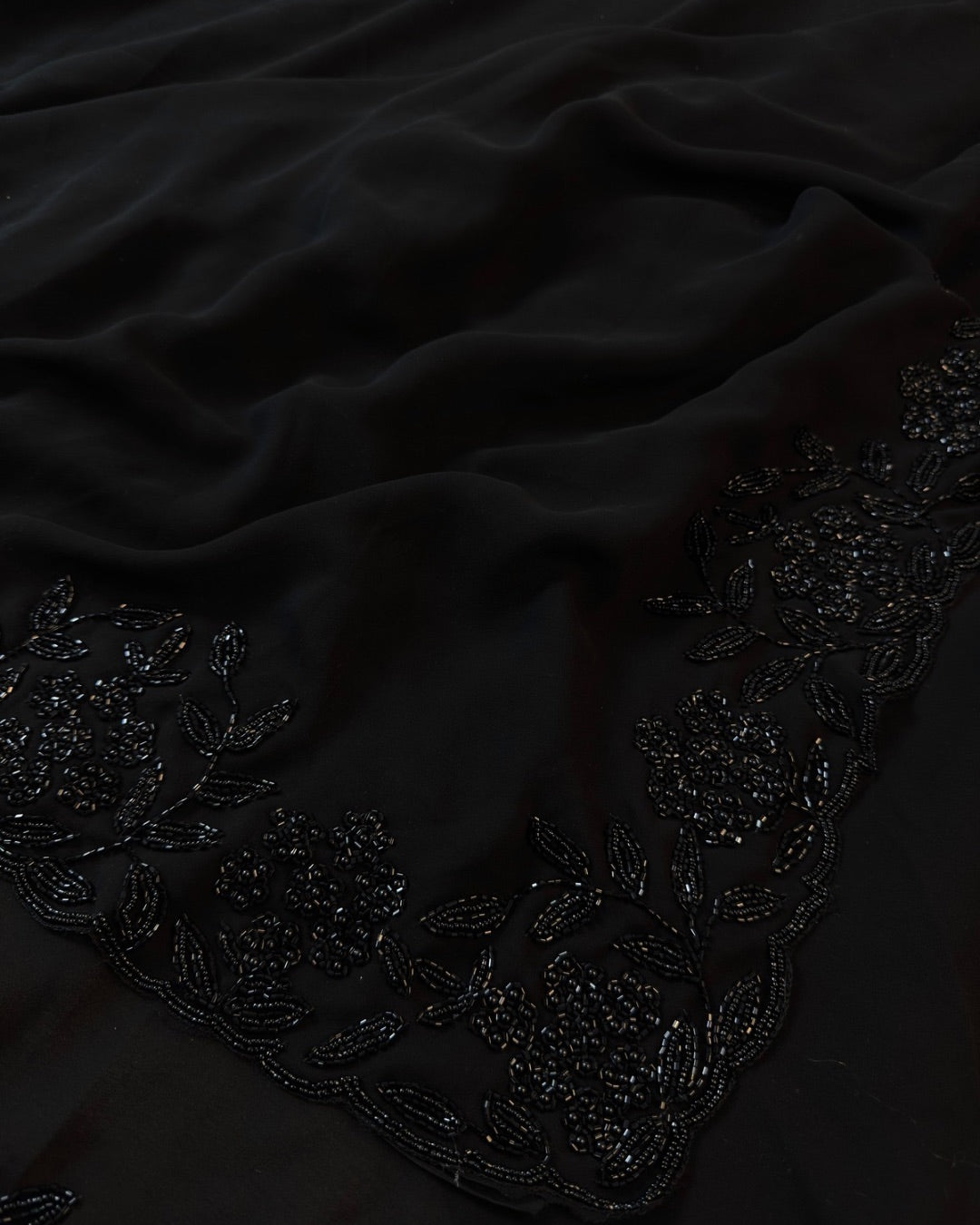 Midnight Black Georgette Saree with Hand Beaded Floral Border