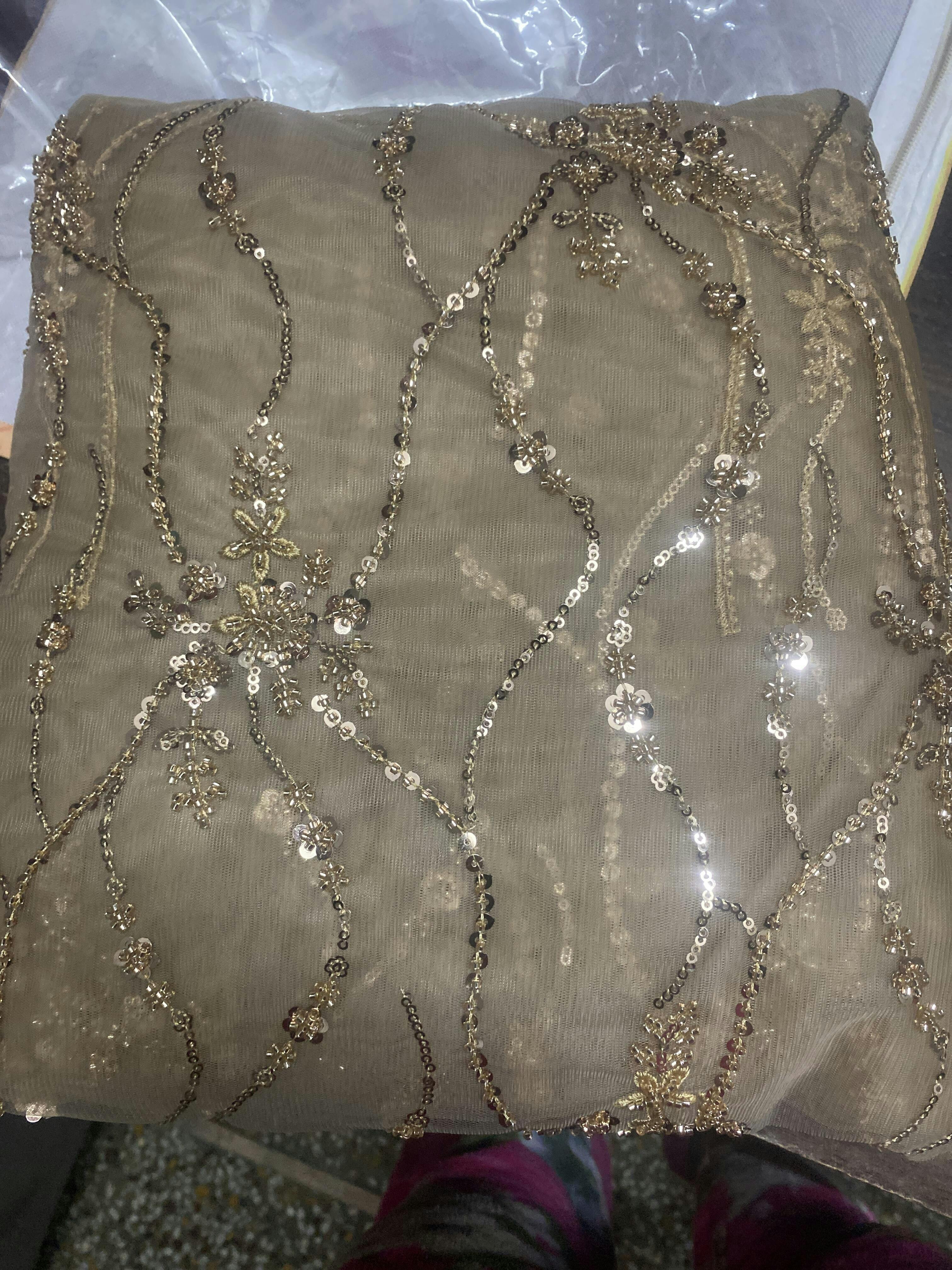 Designer Net Saree with Sequin Floral Embroidery & Scalloped Border