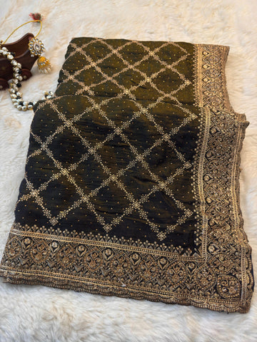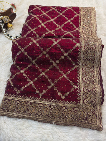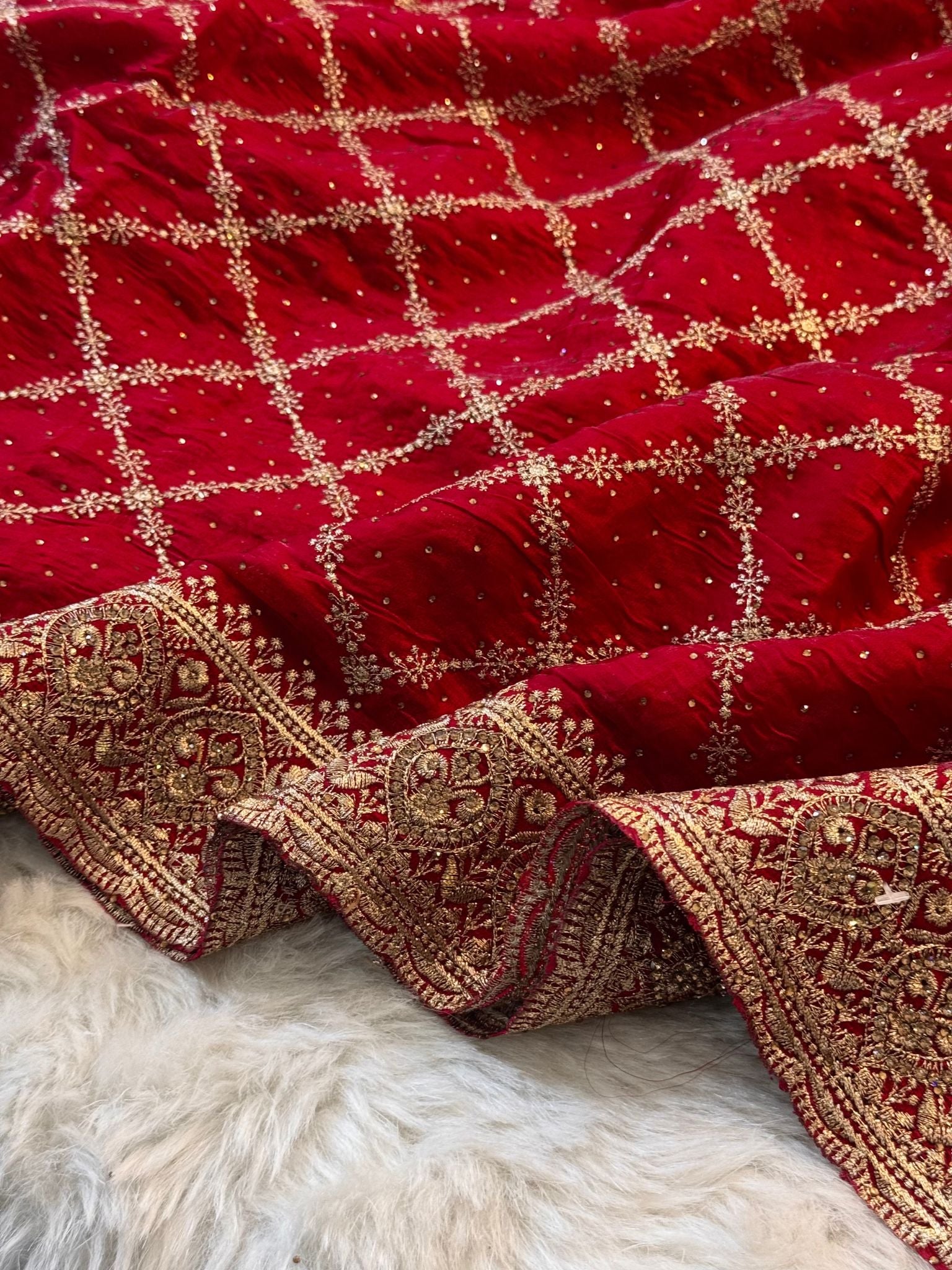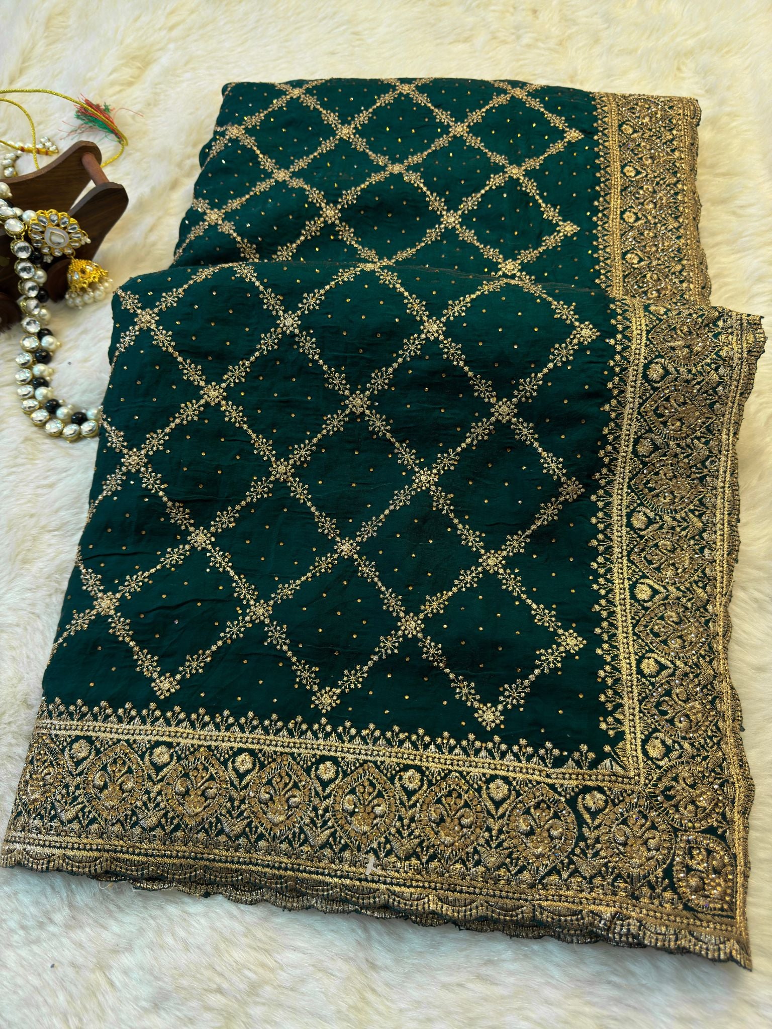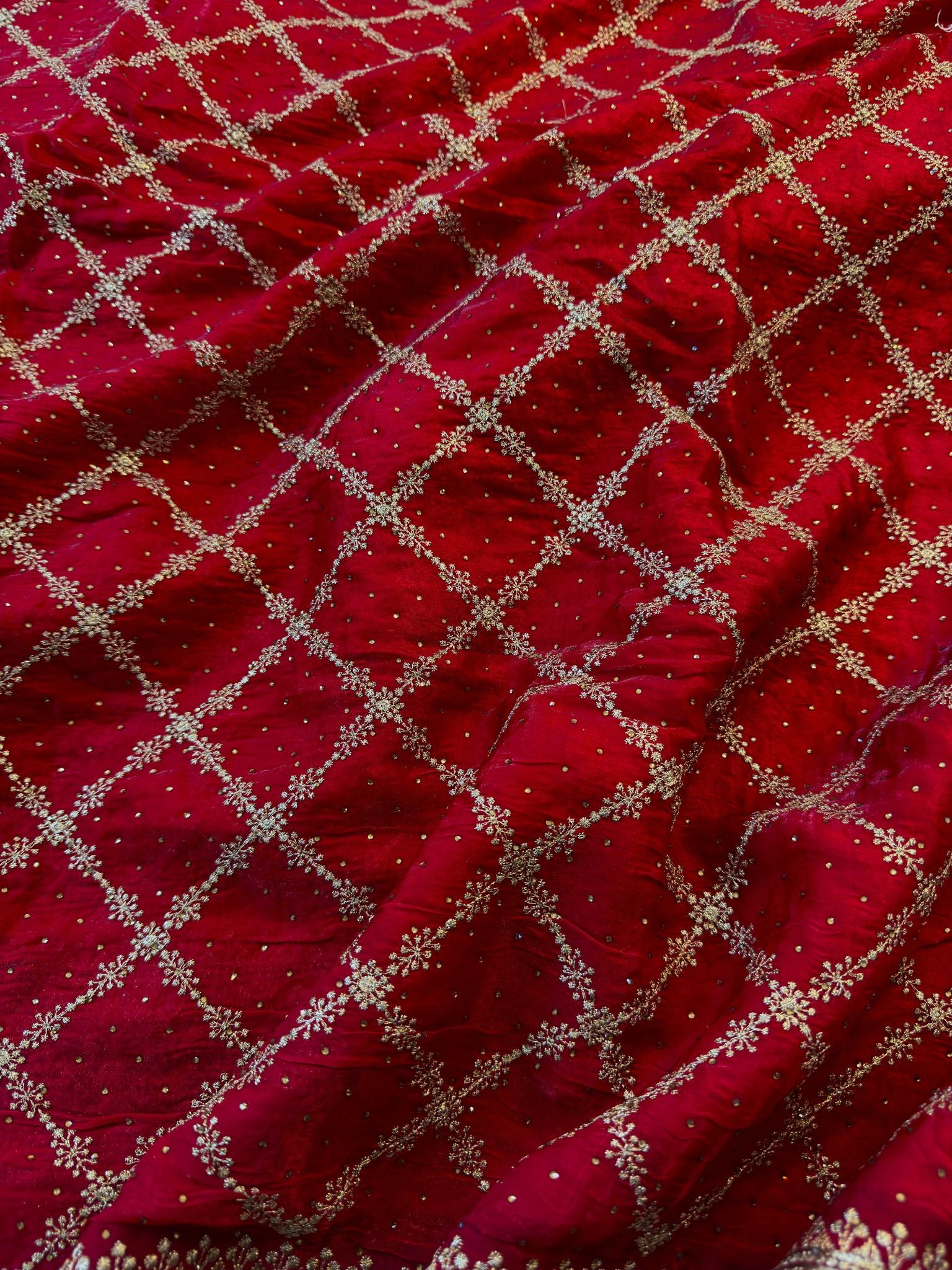 ๐ Work: Machine-embroidered Diamond Jaal + Zari Sequins