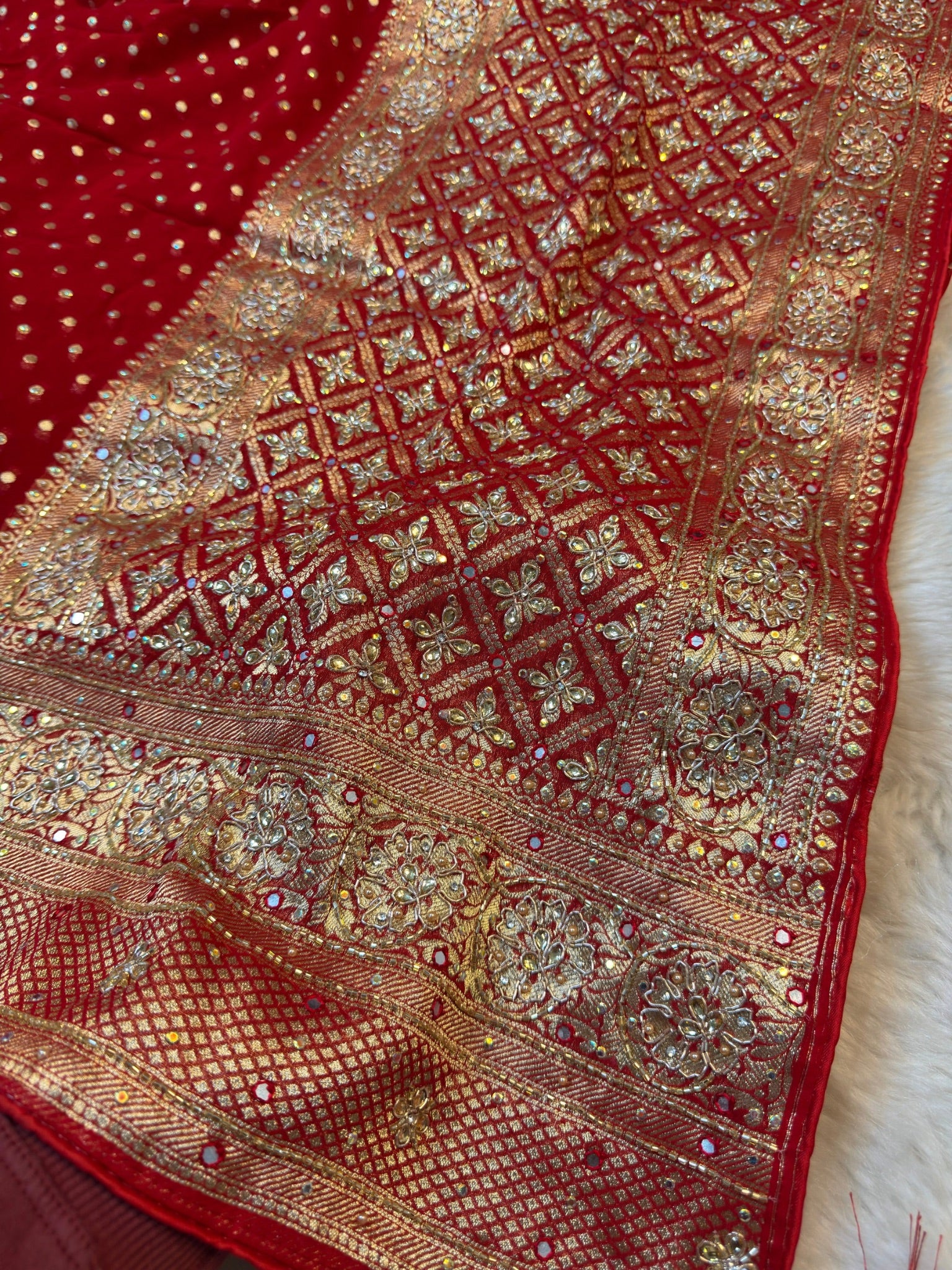 • Diamond jaal pattern with intricate zari detailing