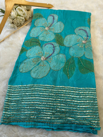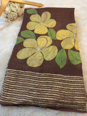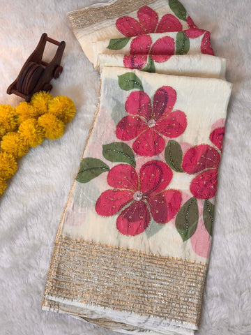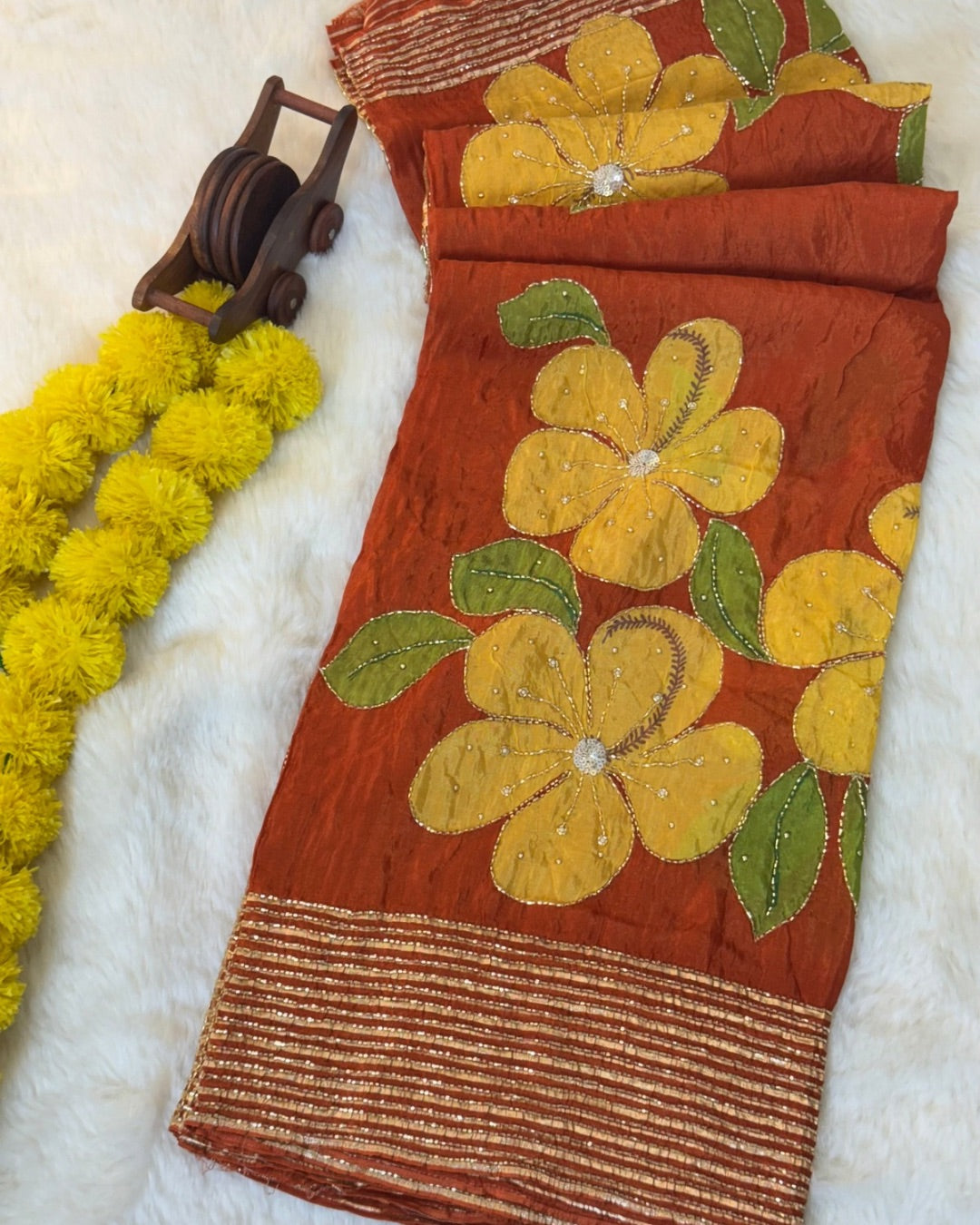 ✨ Make a statement with our HO Silk Floral Handwork Saree – a perfect blend of elegance & festive charm.