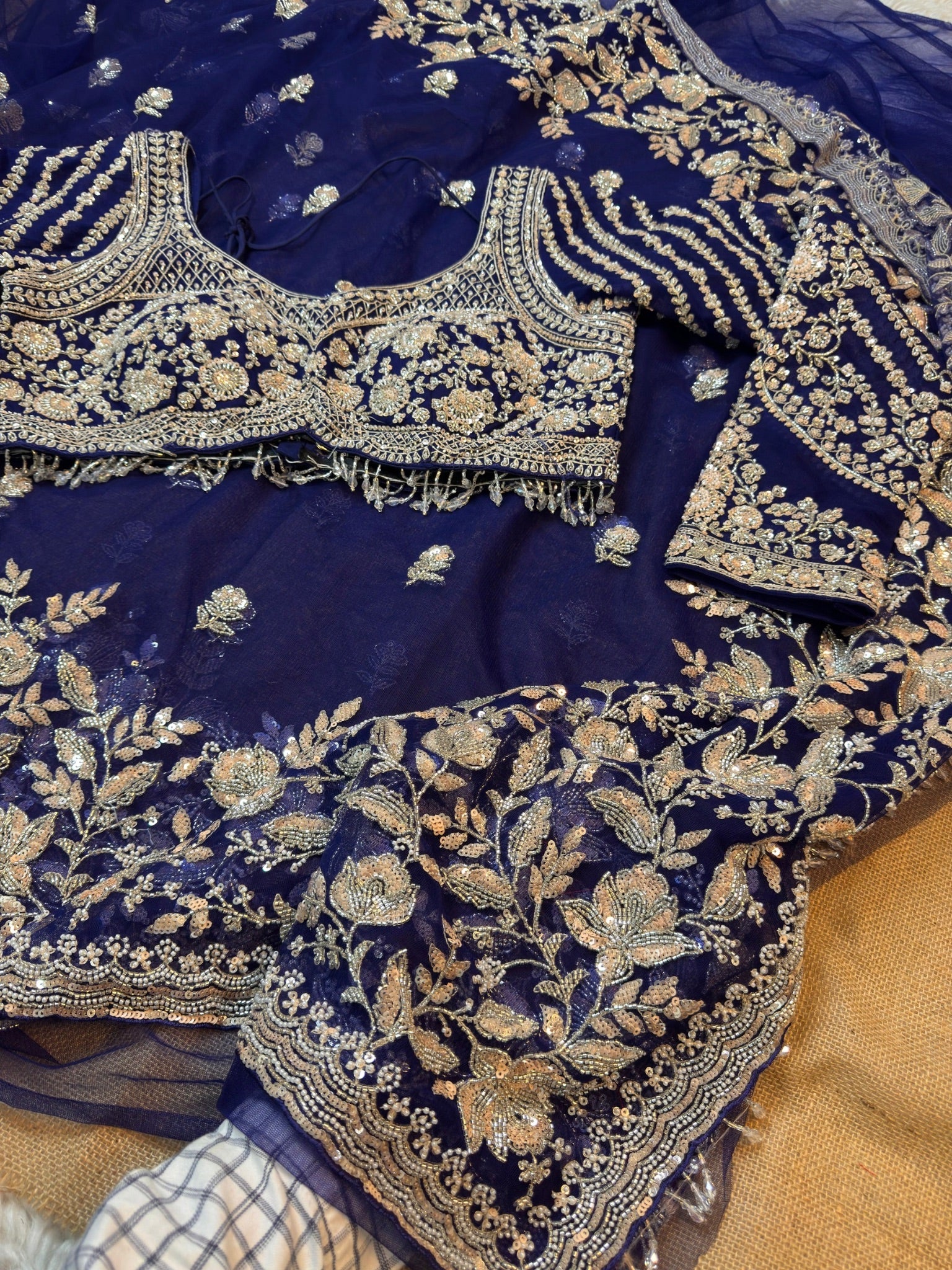 Turn heads at weddings, receptions, and festive occasions with this luxury net saree, crafted to perfection with heavy floral embroidery and shimmering sequin handwork.