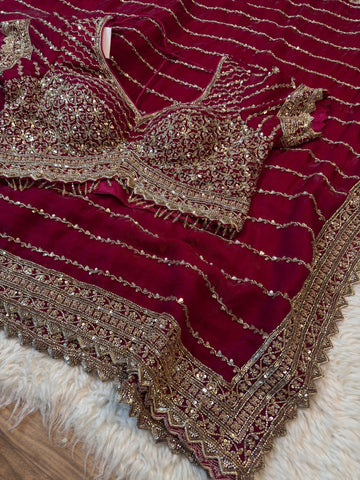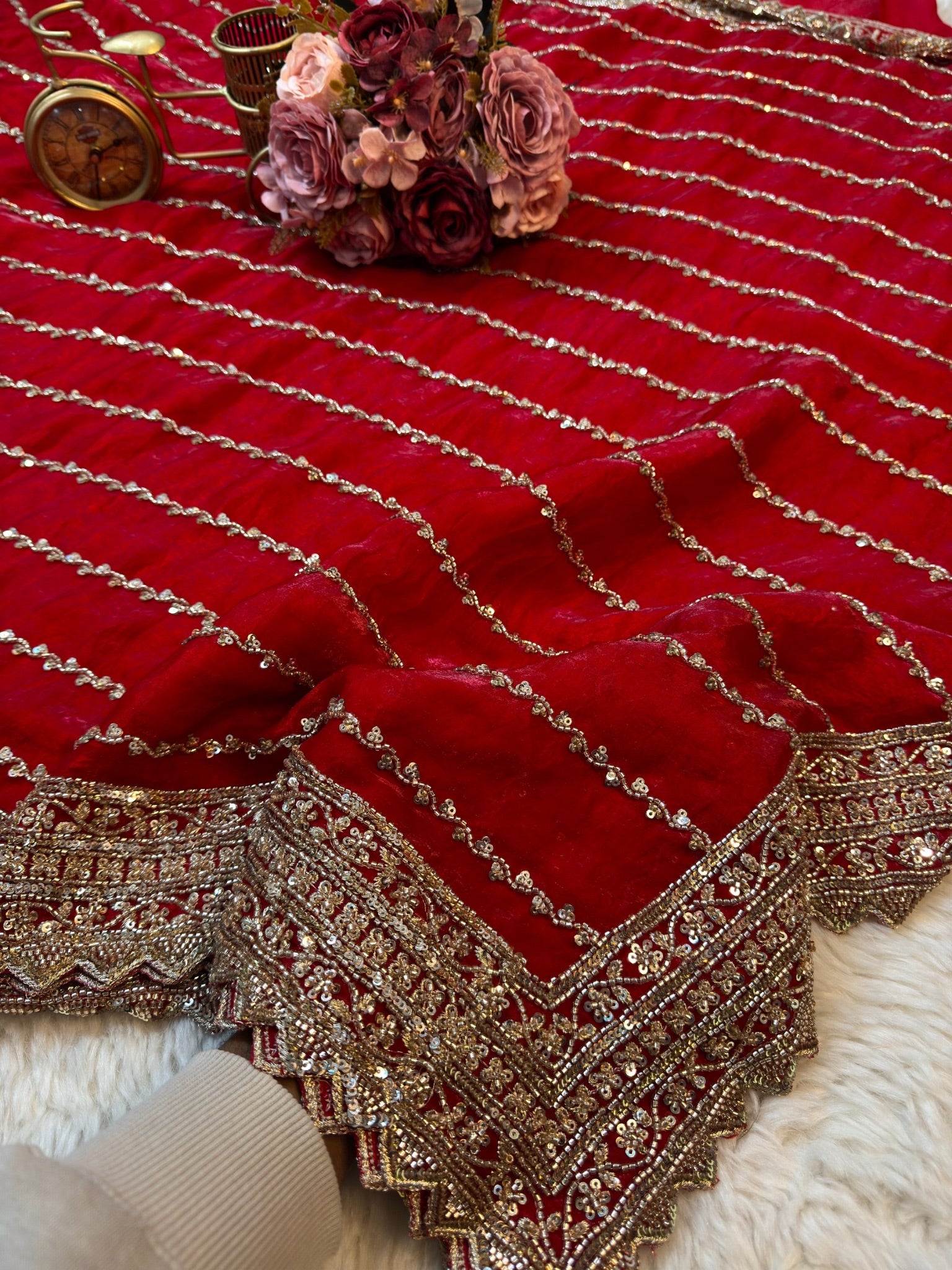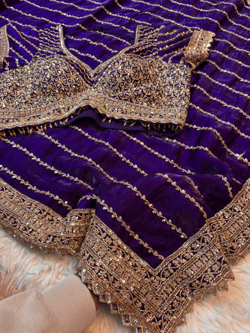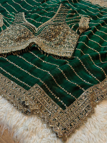 Premium Fendy Silk Saree with Heavy Embroidered Border & Designer Blouse