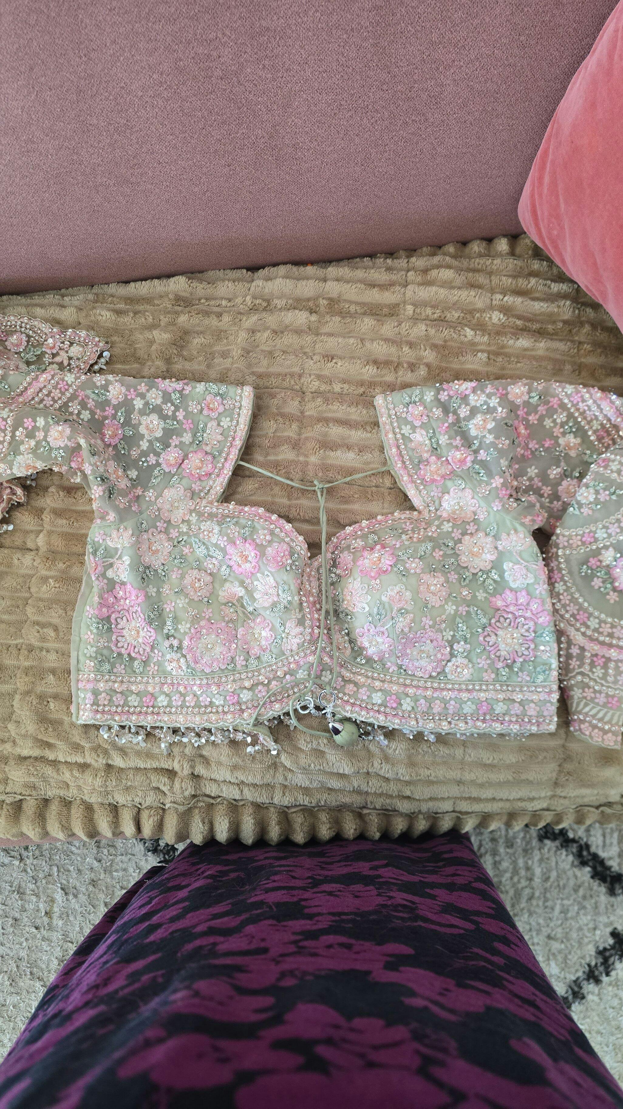 Step into luxury with our Premium 3D Floral Net Saree Set, crafted in soft net and richly embroidered using multi-tone pastel threads, pearls and sequins to create a couture-grade floral effect.