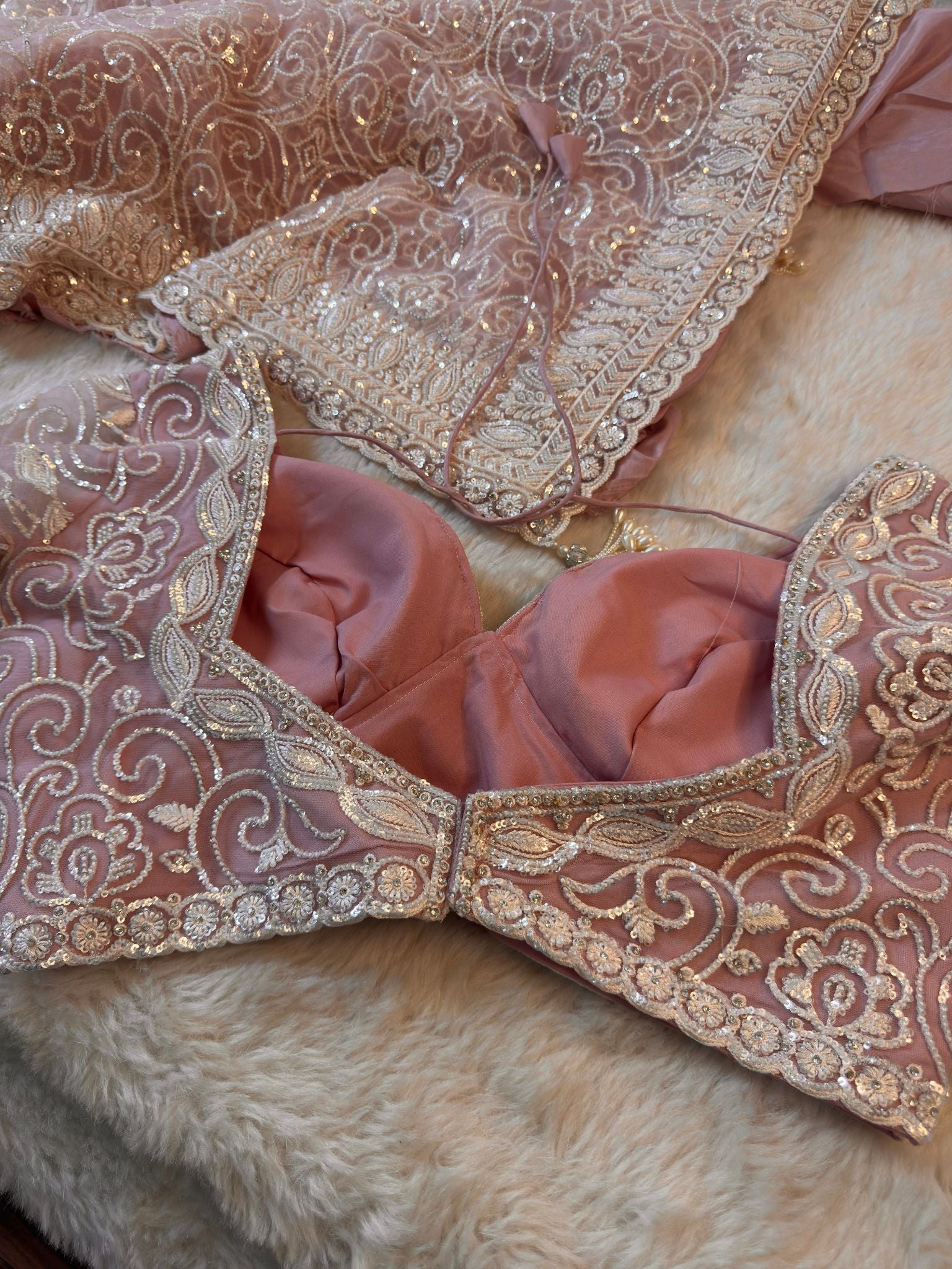 Why you’ll love it: Ready blouse + heavy work saree = instant glamour with zero stitching wait. 💃
