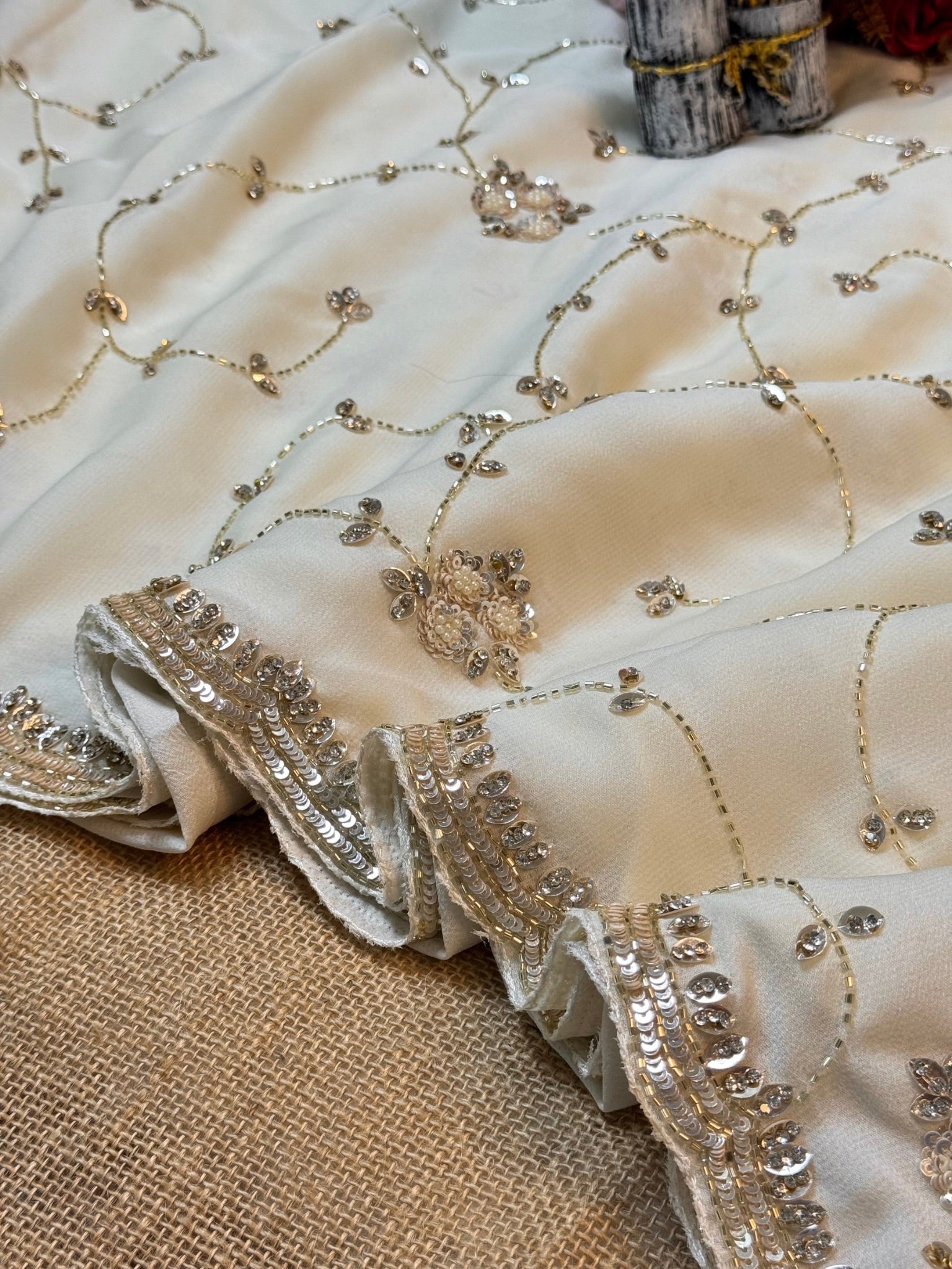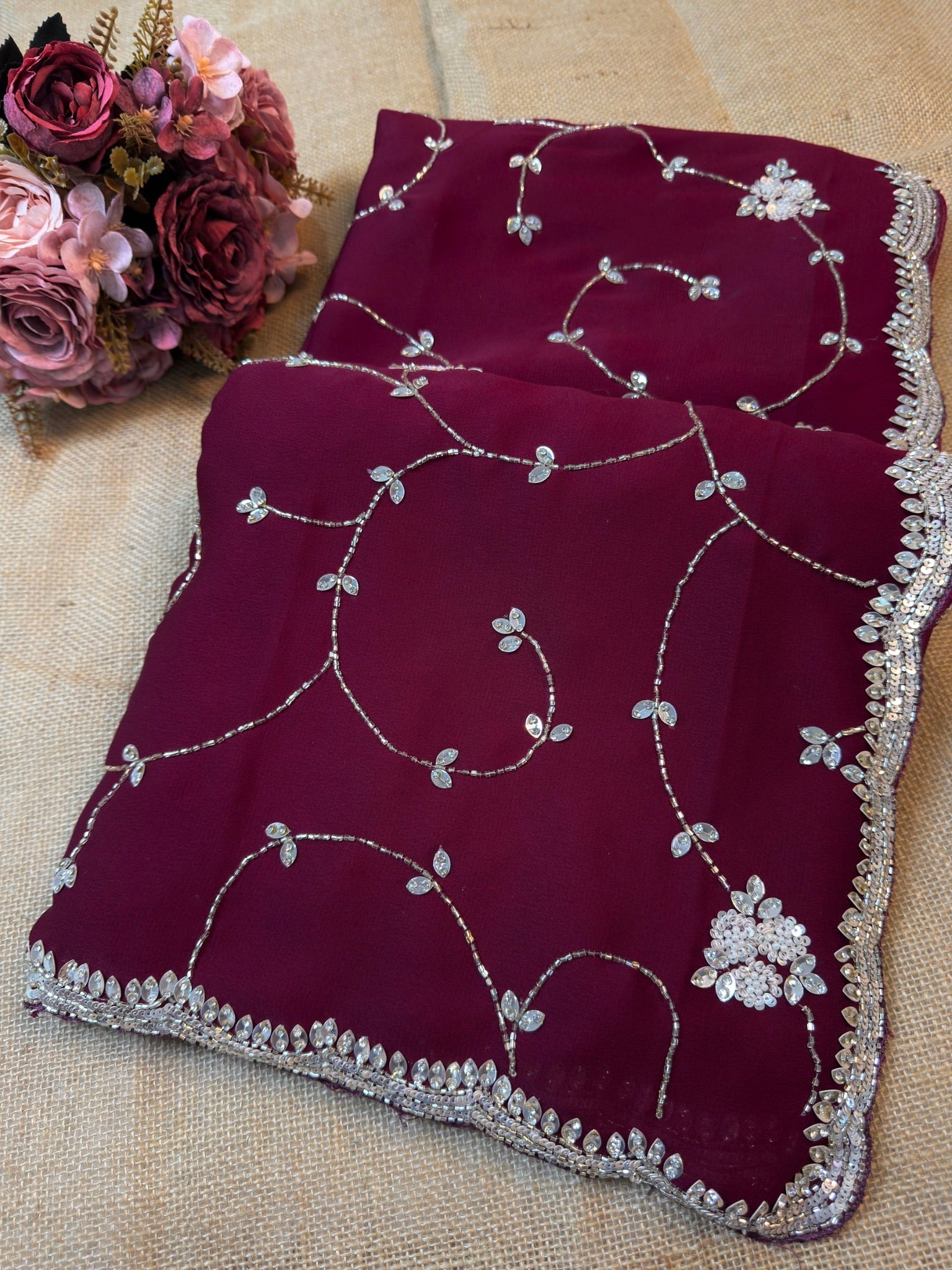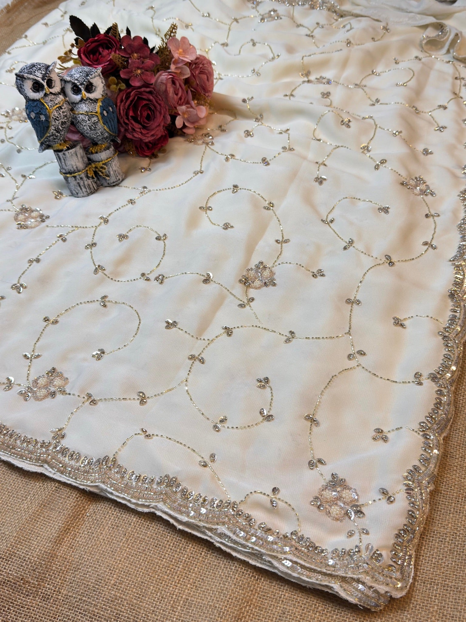 Premium Soft Georgette Saree with Stone & Sequin Vine Embroidery Border