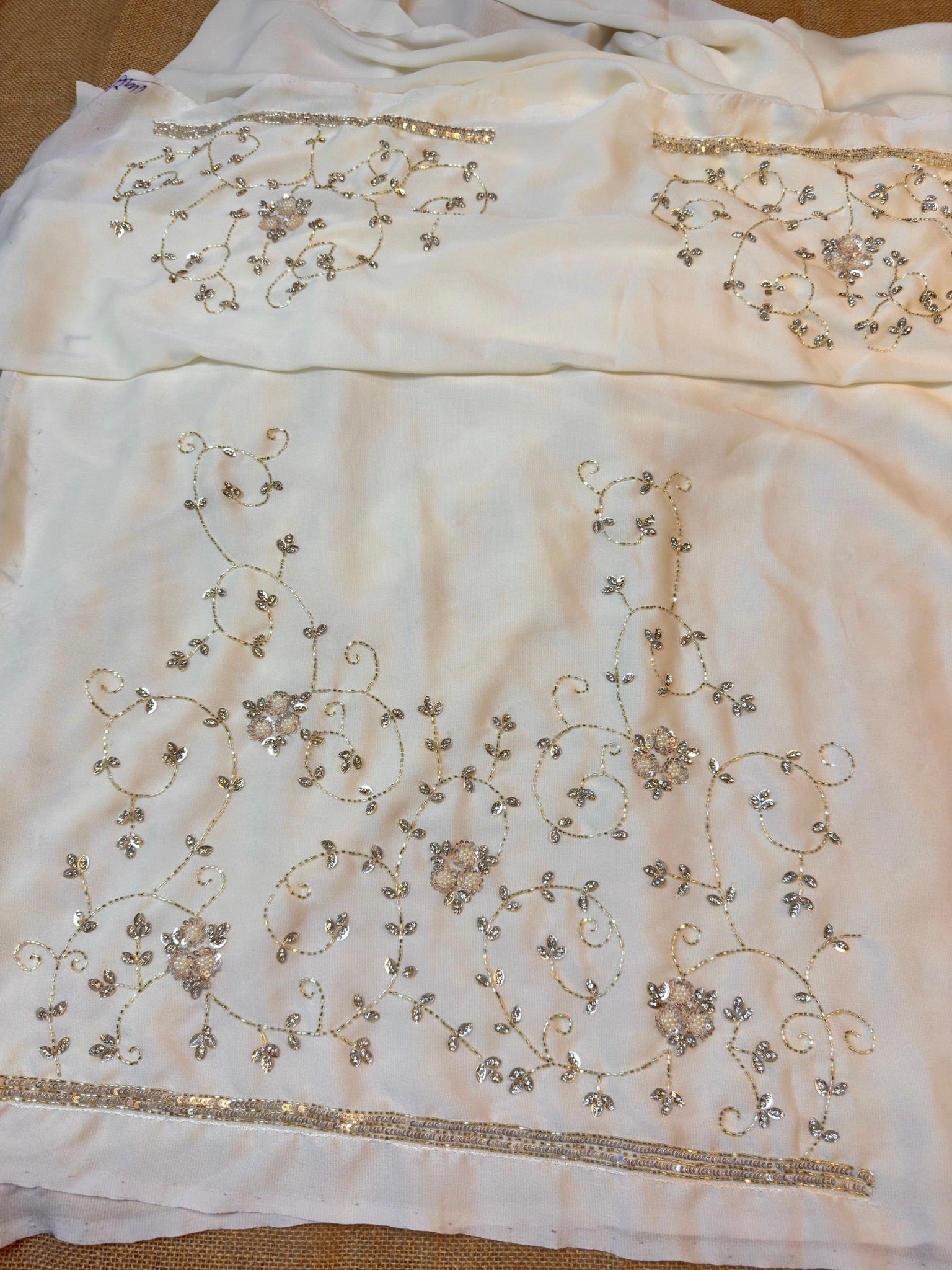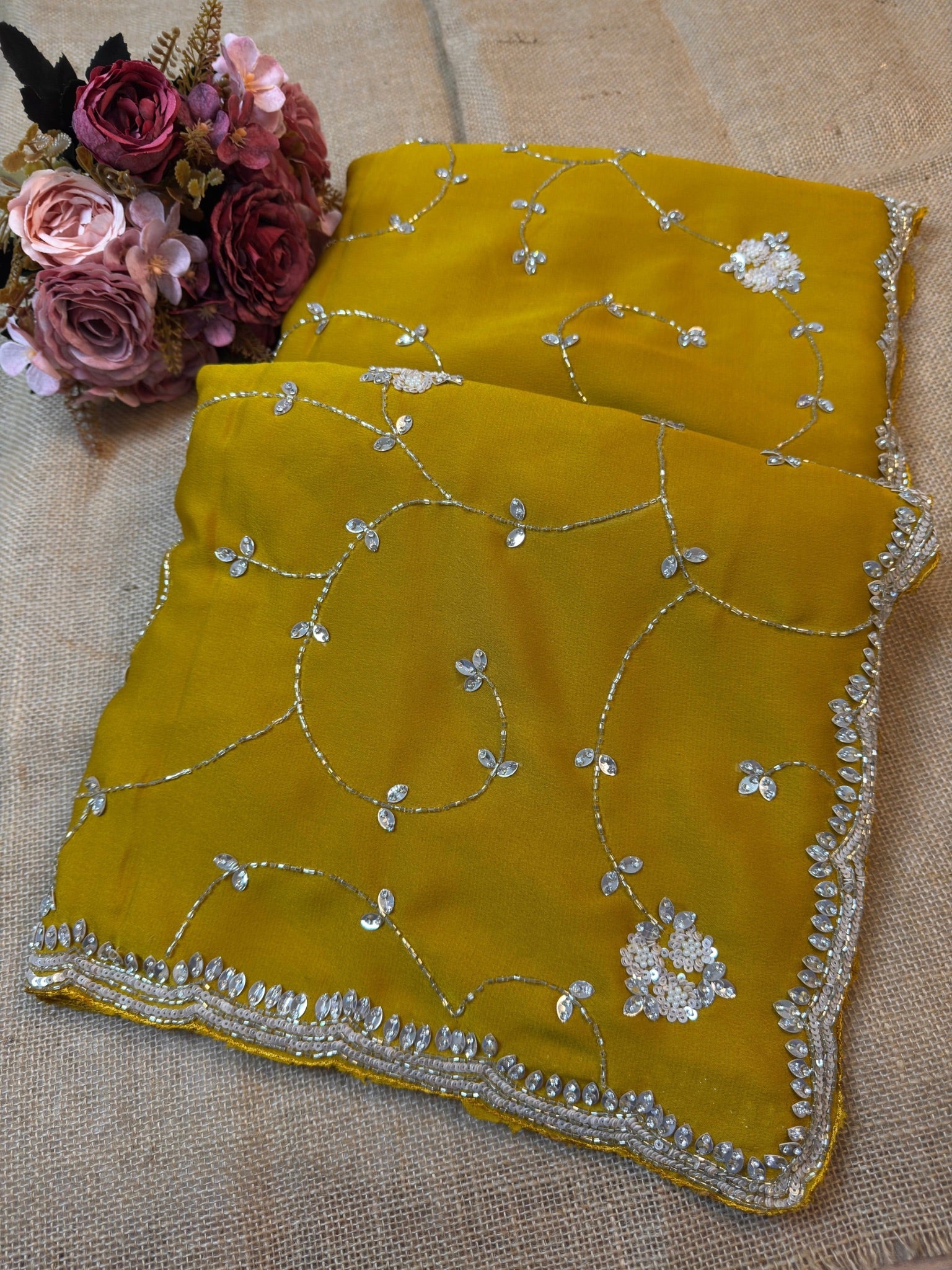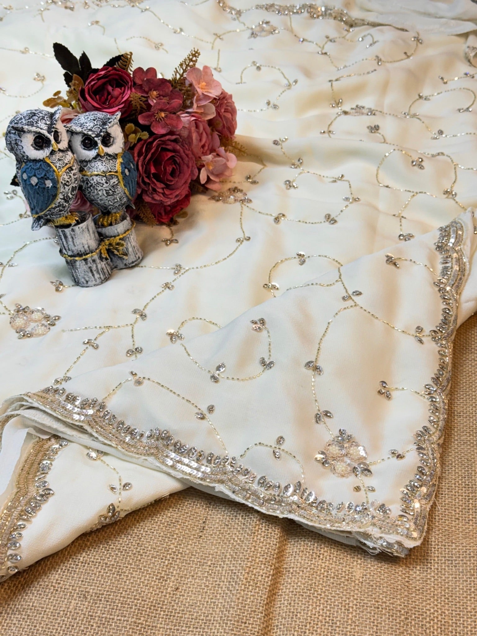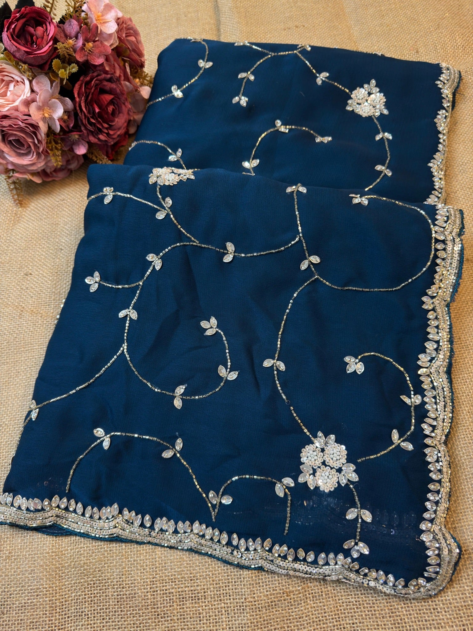 Premium Soft Georgette Saree with Stone & Sequin Vine Embroidery Border
