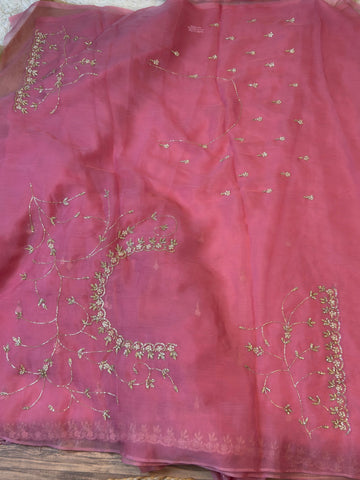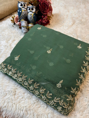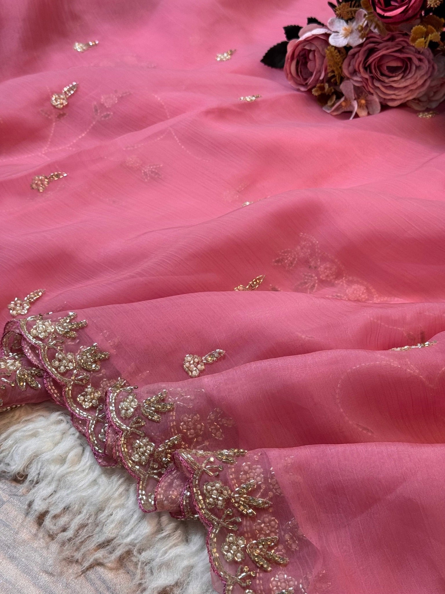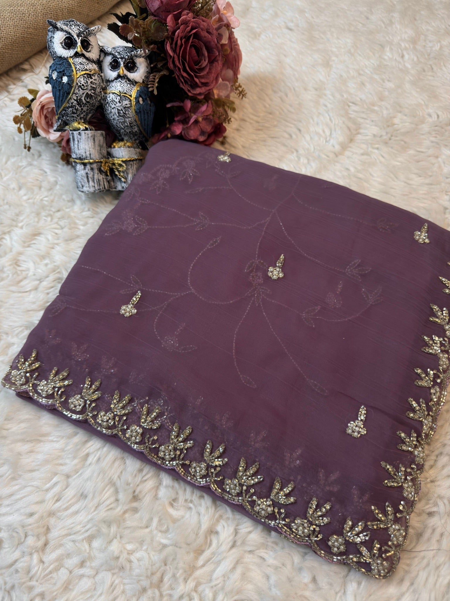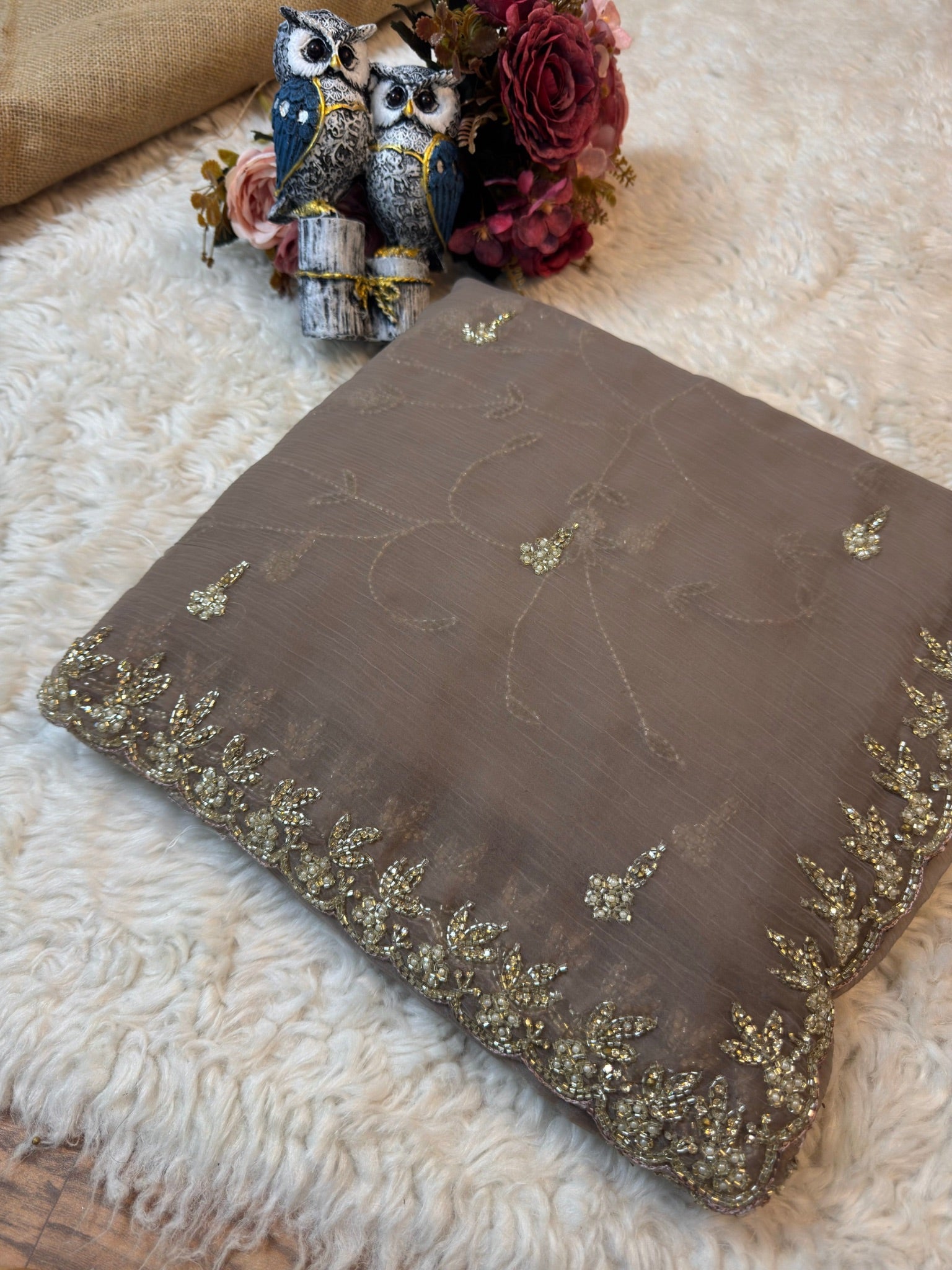 Premium Waree Chiffon Saree with Floral Handwork & Designer Border